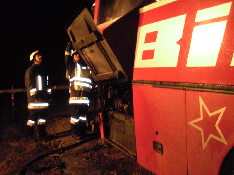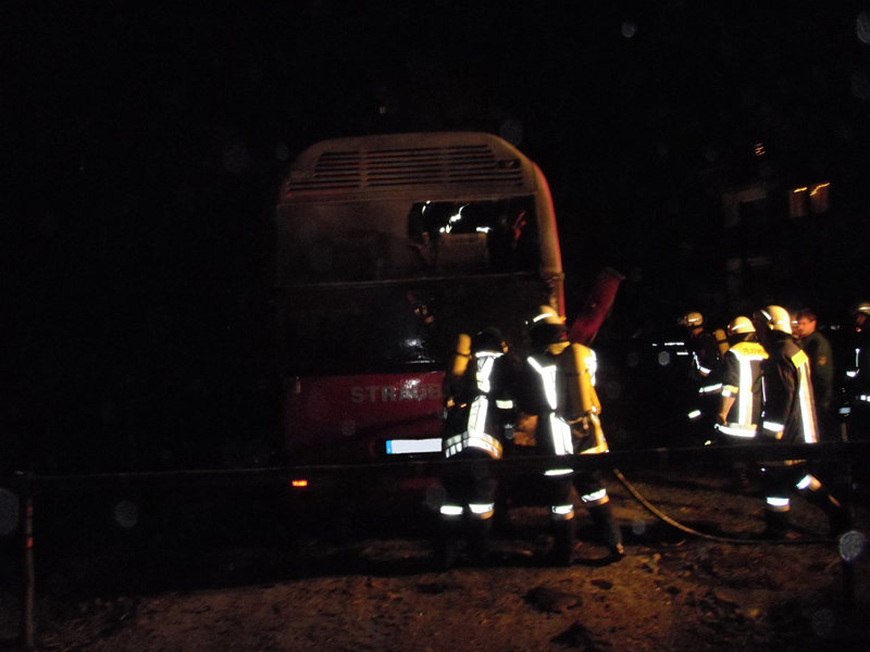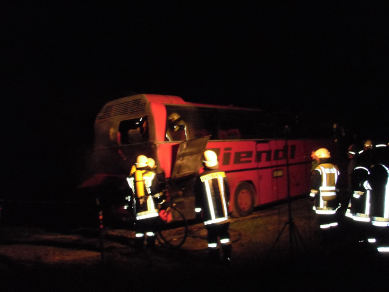 01.12.2009, 03:17 - 04:15 Uhr In der Nacht zum Dienstag wurden die Feuerwehren Kirchroth, Parkstetten, Aufroth und Münster zu einem Busbrand nach Thalstetten alarmiert. Das Feuer, das im Motorraum des Busses ausgebrochen war, konnte durch die Feuerwehr Kirchroth schnell unter Kontrolle gebracht werden. Der Motorblock wurde noch abgekühlt und mit der Wärmbildkamera der Parkstettner Wehr kontrolliert.