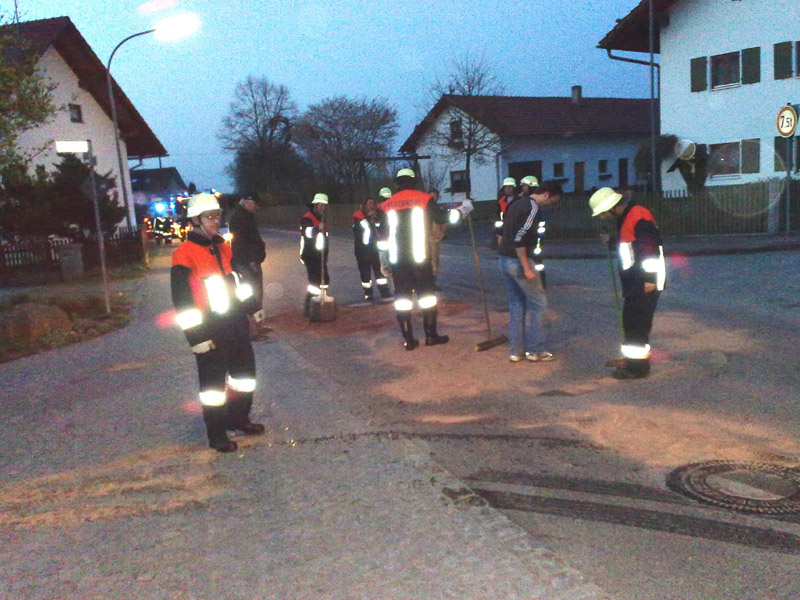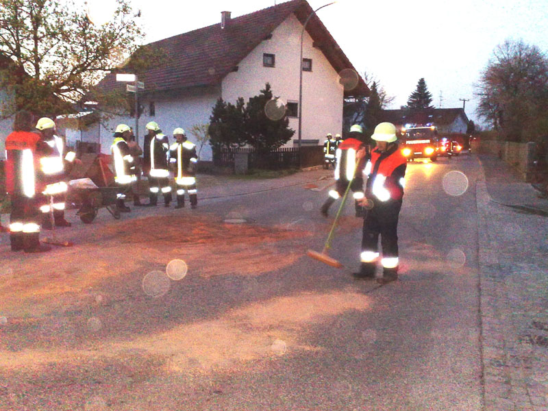 FFW Kirchroth hat das Öl gebunden und den Verkehr geregelt.