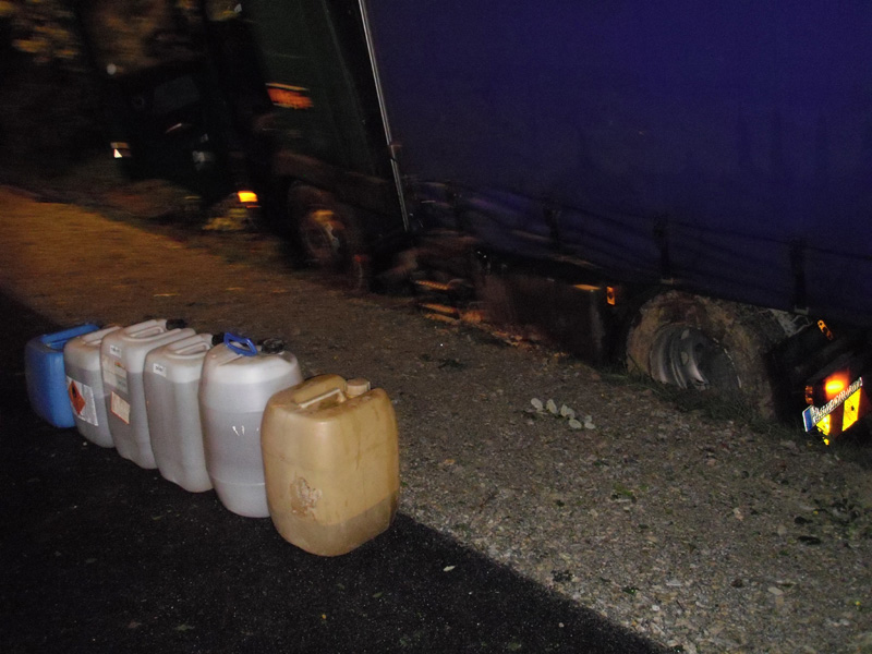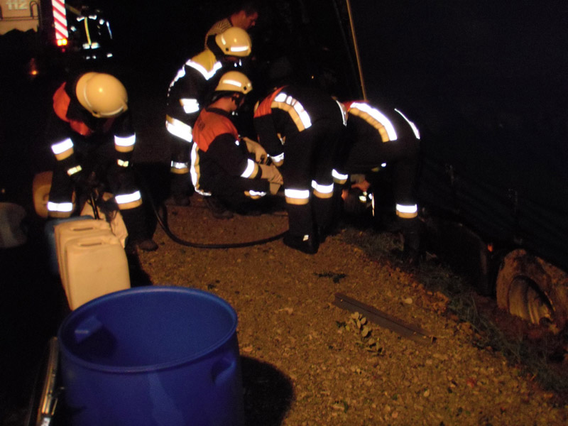 11.08.2009, 03:03 - 04:05 Uhr Auslaufender Diesel aus LKW In der Nacht auf Dienstag wurde die Feuerwehr Kirchroth auf die Autobahn alarmiert, da ein Lastwagen mehrere Meter eine Böschung hinunter gerutscht war und daraufhin Diesel verlor. Es wurden mehrere hundert Liter aus dem Kraftstofftank abgepumpt, bis es gelang, den Tank abzudichten.