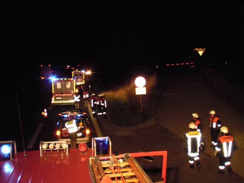 15.08.2009, 01:47 - 04:45 Uhr Angefahrene Person auf der Autobahn Die FFW Kirchroth wurde in der Nacht von Freitag auf Samstag zu einer Personensuche auf die Autobahn alarmiert. Laut Meldung der Feuerwehrzentrale wurde zwischen Kirchroth und Bogen eine Person von einem Fahrzeug erfasst. Kurz nach der Anschlussstelle Kirchroth wurde der 21 jährige Österreicher, der offensichtlich das Straubinger Gäubodenvolksfest besucht hatte, schwerst verletzt im Grünstreifen aufgefunden. Er erlag kurze Zeit später im Krankenhaus seinen Verletzungen. Die Feuerwehr Kirchroth übernahm neben der Versorgung des Verletzten bis zum Eintreffen des Rettungsdienstes die Ausleuchtung und Absicherung der Einsatzstelle. Die Feuerwehr Bogen wurde später mit einer Lichtgiraffe vom Unfallgutachter zur besseren Ausleuchtung nachgefordert.