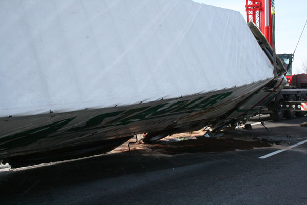 Aufliegers sicherstellen zu können, musste der LKW, der mit Kleidung beladen