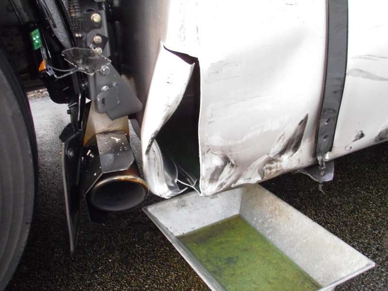 Fahrzeuge nach einem Verkehrsunfall die Fahrbahn mit Öl verunreinigt. Die