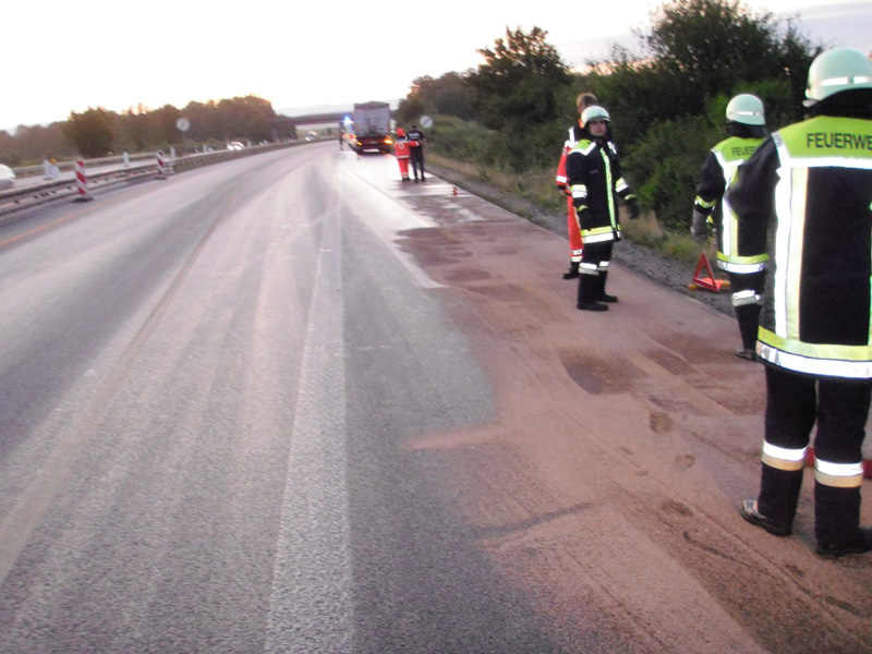16.08.2009, 10:46 - 12:30 Uhr Ölspur nach Verkehrsunfall auf der Autobahn
