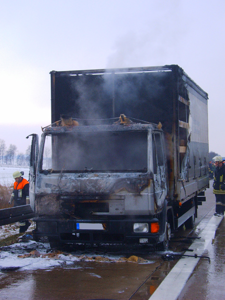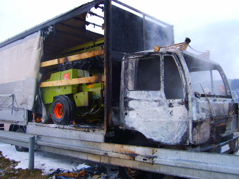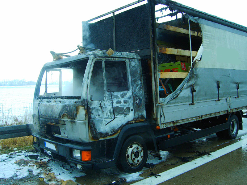 22.12.2009, 11:37 - 12:15 Uhr LKW - Brand auf der BAB 3 Am Dienstagvormittag wurden die Feuerwehren Wörth an der Donau und Kirchroth zu einem LKW - Brand auf die Autobahn A 3 zwischen den Anschlussstellen Wörth / Ost und Kirchroth alarmiert. Die FFW Wörth konnte den 7,5-tonner, der im Bereich des Führerhauses im Vollbrand stand, schnell ablöschen. Die FFW Kirchroth wurde nicht mehr eingesetzt.