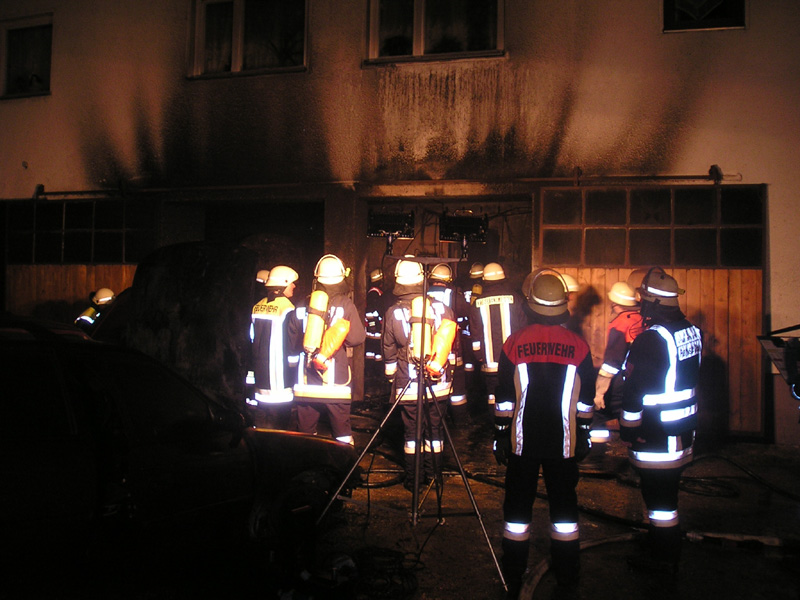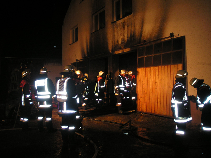 26.03.2009, 04:23 - 06:15 Uhr Garagenbrand in Aufroth Am frühen Donnerstagmorgen fing ein Auto in einer Garage in Aufroth aus bislang ungeklärter Ursache Feuer. Ein Nachbar bemerkte den Brand und alarmierte die Feuerwehr. Es rückten die Feuerwehren aus Aufroth, Münster, Kirchroth und Parkstetten zur Einsatzstelle aus. Beim Eintreffen der FFW Kirchroth hat der Brand bereits auf einen zweiten PKW in der Garage übergegriffen. Da sich das Löschen der Fahrzeuge in der Garage als äußerst schwierig herausstellt, wurde der erste Wagen mit der Hand aus der Garage gezogen. Für das Zweite Fahrzeug war ein Traktor nötig, da man es nicht von Hand bewegen konnte. Die beiden PKWs konnten im Hof dann schnell gelöscht werden. Die Garage wurde von der Parkstettener Feuerwehr mit Hilfe der Wärmebildkamera noch auf Glutnester untersucht. Des weiteren wurde eine Strom-Notversorgung für den angrenzenden Stall hergestellt. Die Kirchrother Wehr hat die Einsatzstelle anschließend noch für die Kriminalpolizei ausgeleuchtet.
