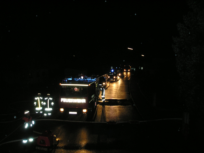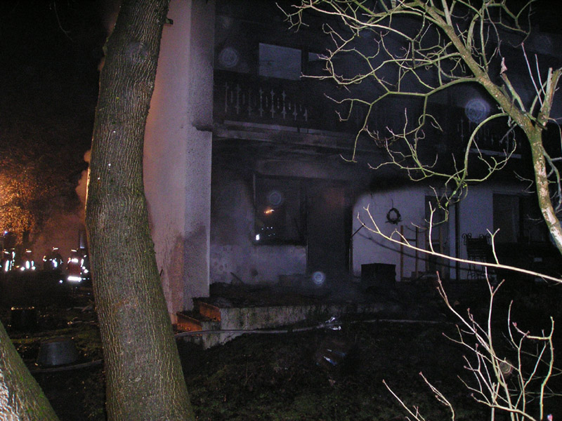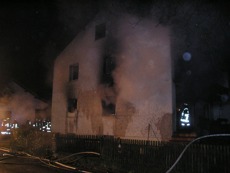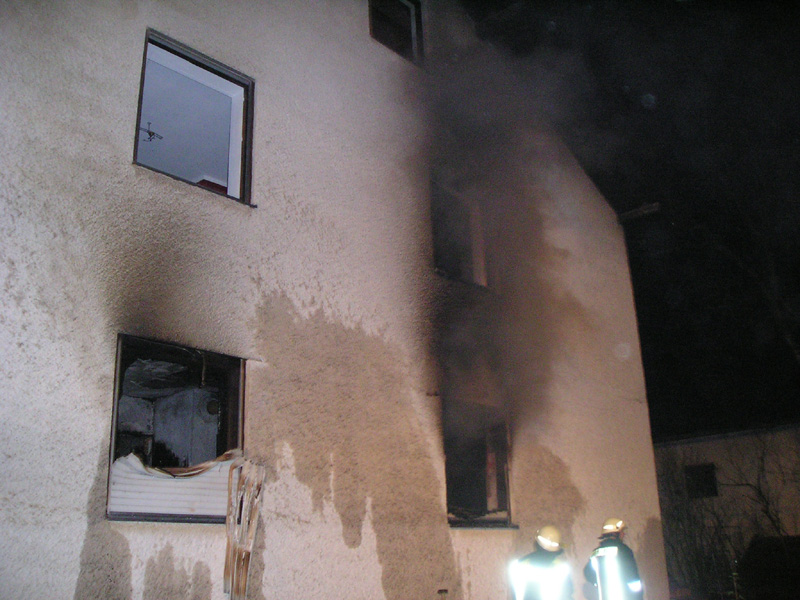 31.12.2009, 03:41 - 06:30 Uhr Wohnhausbrand in Obermiethnach Zu einem Wohnhausbrand in Obermiethnach wurden am frühen Silvestermorgen die Feuerwehren aus Kirchroth, Parkstetten, Obermiethnach und Pillnach alarmiert. Beim Eintreffen der FFW Kirchroth stand ein großer Teil des Erdgeschosses im Vollbrand. Eine Mutter hat noch vor Eintreffen der Feuerwehren ihre 7 jährige Tochter aus einem Fenster in eine Wiese fallen lassen, bevor sie selbst aus dem Fenster sprang. Zwei weitere Hausbewohner konnten sich aus dem Schlafzimmer direkt auf die Terrasse retten, erlitten dabei jedoch Rauchvergiftungen. Das Feuer, das in der Küche und im Esszimmer wütete, wurde durch die Feuerwehren Kirchroth und Parkstetten unter schwerem Atemschutz abgelöscht. Die beiden Zimmer brannten vollkommen aus. Das völlig verrauchte Haus wurde mit dem Druckbelüfter der Feuerwehr Parkstetten entraucht. Die Schadenshöhe liegt nach ersten Polizeischätzungen bei etwa 200.000 bis 300.000 Euro.