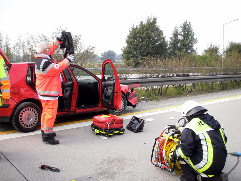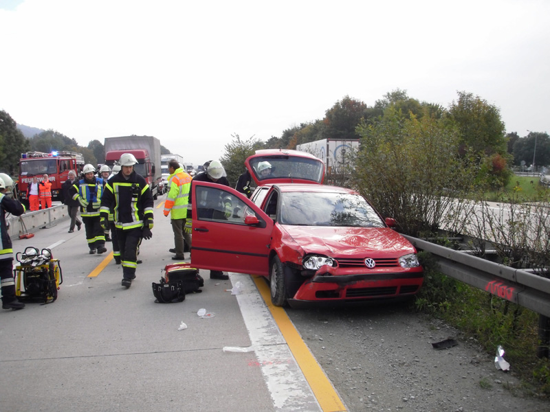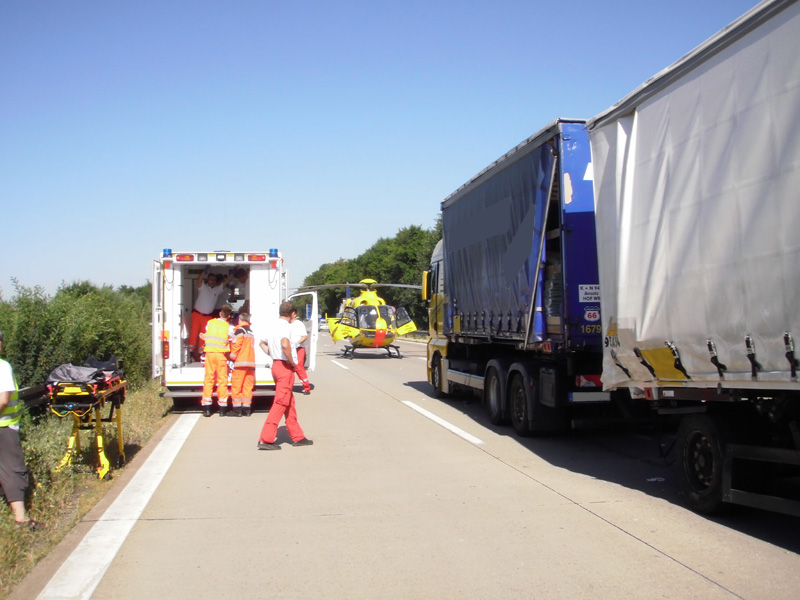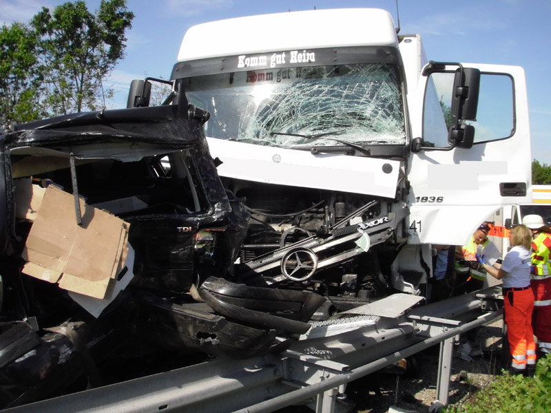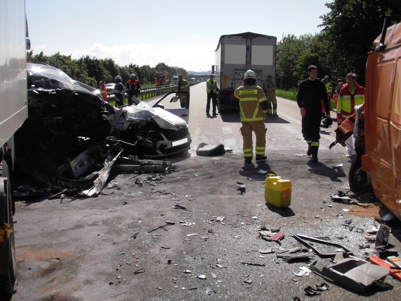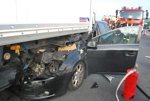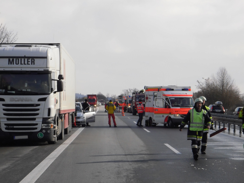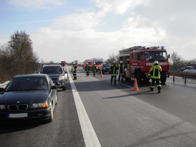Verkehrsunfall mit eingeklemmter Person auf die A3 zwischen Wörth und
