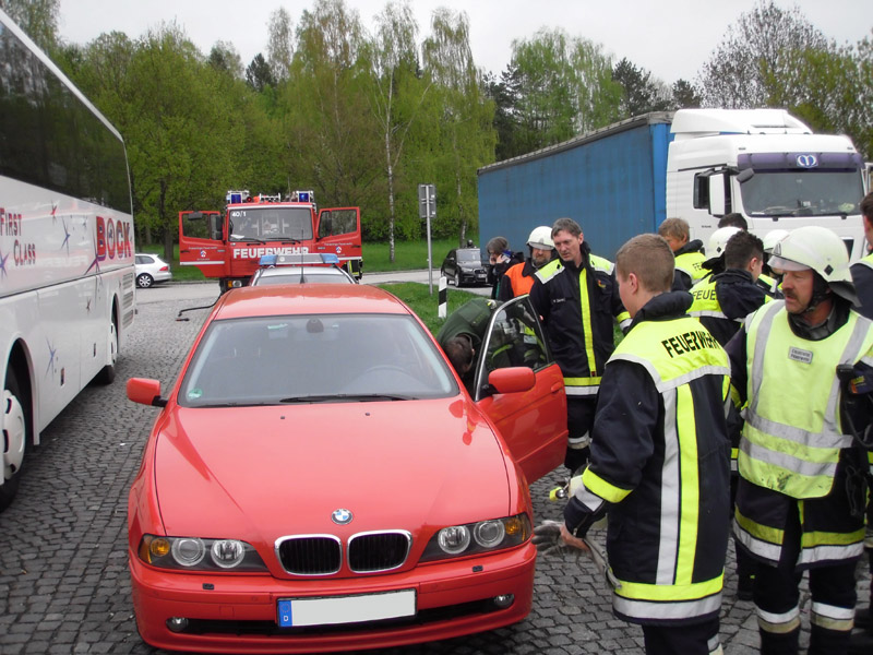 07.10.2013, Alarmierung: 10:08 Uhr Die Feuerwehren Kirchroth und Parkstetten wurden zu einem Verkehrsunfall mit eingeklemmter Person alarmiert. Bei dem Unfall ist eine PKW Lenkerin im Bereich der Baustelle verunfallt, ihr Fahrzeug wurde in die Leitplanke geschleudert und blieb dort stehen, so dass die Frau nicht aussteigen konnte. Entgegen der ersten Meldung war die Person nicht im Fahrzeug eingeklemmt. Sie wurde trotzdem schonen mit dem Spineboard über den Kofferraum durch Feuerwehr und Rettungsdienst gerettet, der Einsatz von Spreizer oder Rettungsschere war glücklicherweise nicht notwendig. Da keine Betriebsstoffe ausliefen und auch keine Brandgefahr bestand, konnte die Einsatzstelle nach der Personenrettung schnell an die Polizei übergeben werden.