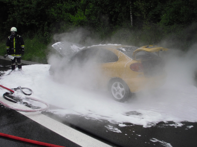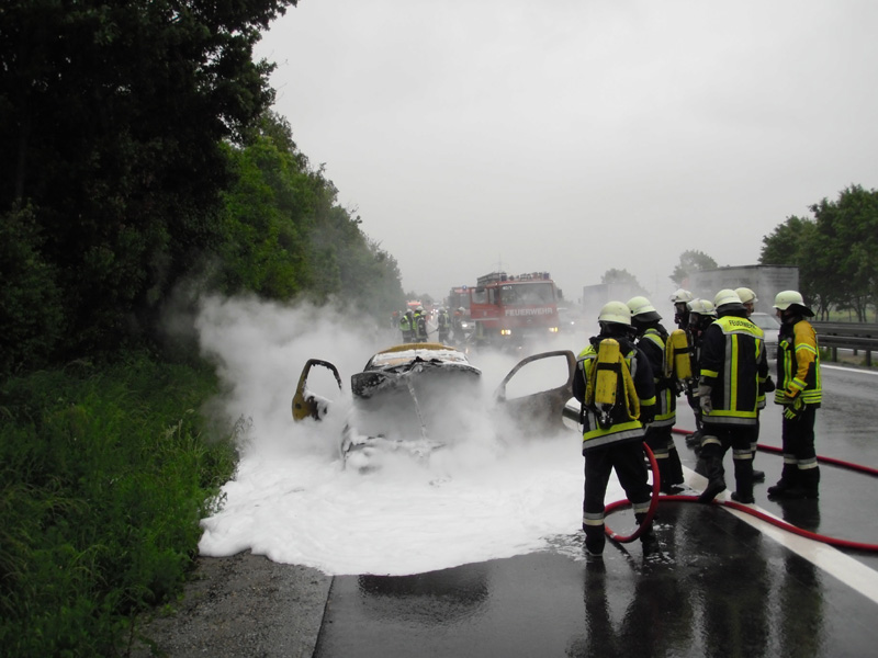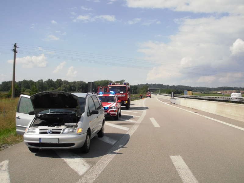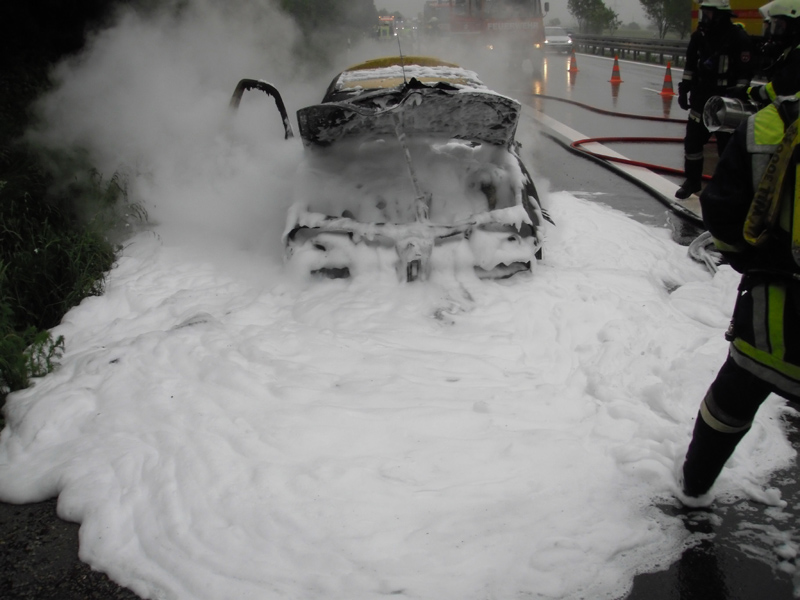 29.05.2013, Alarmierung: 11:10 Uhr Die Feuerwehren Kirchroth und Parkstetten wurde zu einem PKW-Brand auf die A 3 zwischen Kirchroth und Wörth alarmiert. Beim Eintreffen am Einsatzort stand die vordere Hälfte des Fahrzeugs bereits in Brand. Die Feuerwehr Kirchroth löschte das Fahrzeug mit einem Schaumrohr unter Einsatz des schweren Atemschutzes, auch die Feuerwehr Parkstetten stellte einen Atemschutztrupp. Gemeinsam mit dem VSA der FF Parkstetten wurde die Unfallstelle abgesichert