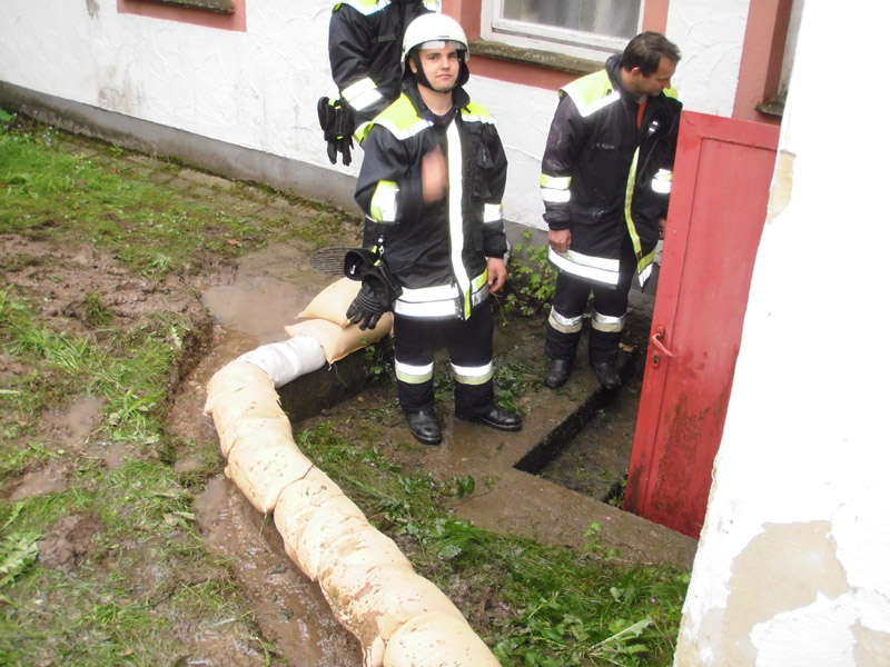 03.06.2013, Einsatzbeginn: 21:30 Uhr Da ein Teil des örtlichen Blumengeschäfts so tief liegt, dass es den Prognosen nach in den nächsten Stunden überflutet würde, wurde der Teil von der Feuerwehr ausgeräumt und die Ware in den höher gelegenen Teil des Geschäfts geräumt. Der Wasserstand wurde regelmäßig kontrolliert und teils mit Sandsäcken Sperren errichtet. Das Eindringen des Wassers ins Geschäft konnte jedoch nicht verhindert werden.