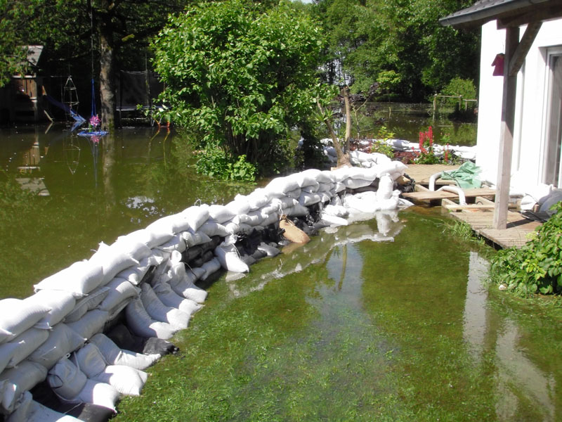 Vormittags Der Bewohner eines Anwesens in Bachhof ist zu uns ins Gerätehaus gekommen und hat um Hilfe gebeten, da sein Haus vom Hochwasser gefährdet sei. Unser Mehrzweckfahrzeug war im Bereich Kößnach unterwegs und machte sich sofort auf den Weg zu dem Anwesen. Die Lage war tatsächlich schon relativ kritisch, sodass sofort Maßnahmen eingeleitet wurden. Es wurden Sandsäcke vom örtlichen Bauhof angefordert und die Alarmierung der ortszuständigen Feuerwehr Kößnach veranlasst. Gemeinsam wurden erste Sandsackbarrieren aufgebaut, die Latten der Terrasse entfernt um auch dort Sandsäcke aufrichten zu können und mit dem Abpumpen des rasch steigenden Wassers begonnen. Da weiteres Personal nötig war, wurden die Feuerwehren aus Pittrich, Aufroth und Obermiethnach zur Verstärkung angefordert. Die Feuerwehr Steinach stellte noch eine leistungsstarke Chiemsee-Pumpe zur Verfügung. Die Einsatzstelle wurde im Verlauf abwechselnd von den Feuerwehren Kößnach und Pittrich betreut, da der Pumpeneinsatz bis zum Absinken der Pegel nötig war. Sowohl das Wohnhaus, als auch ein angrenzendes Nebengebäude konnten vollständig trocken gehalten werden.