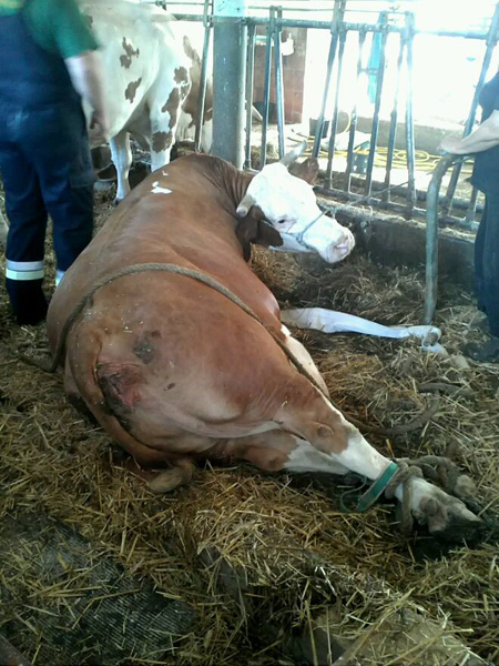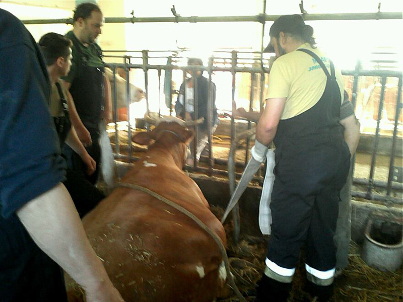 Morgen Ein paar Kameraden wurden zu einem örtlichen Landwirt gerufen, um dort beim Lagern einer Kuh zu helfen, die in der vergangenen Nacht entbunden hat. Der Landwirt brauchte unsere Hilfe, da er altersbedingt nicht mehr so leistungsstark ist, weshalb er auch vor ein paar Jahren die Tierwirtschaft einstellte. Aufgrund der Evakuierungsmaßnahmen anlässlich des Hochwassers in Reibersdorf wurde sein Stall jedoch wieder mit Tieren belegt. Die Feuerwehr war auch an den beiden folgenden Tagen noch mehrmals am Hof um zu helfen.