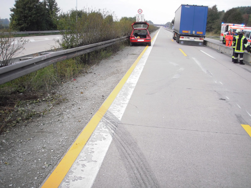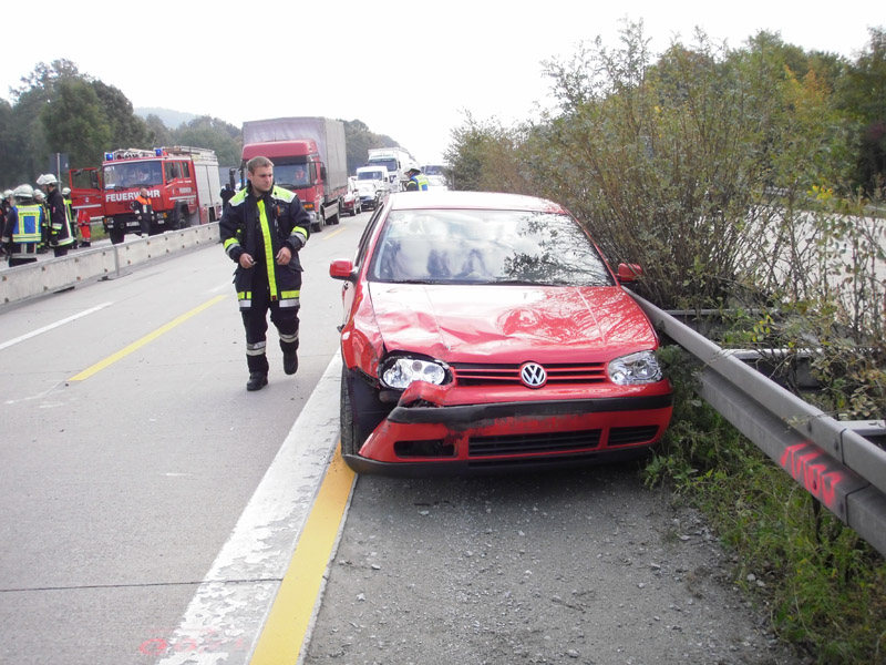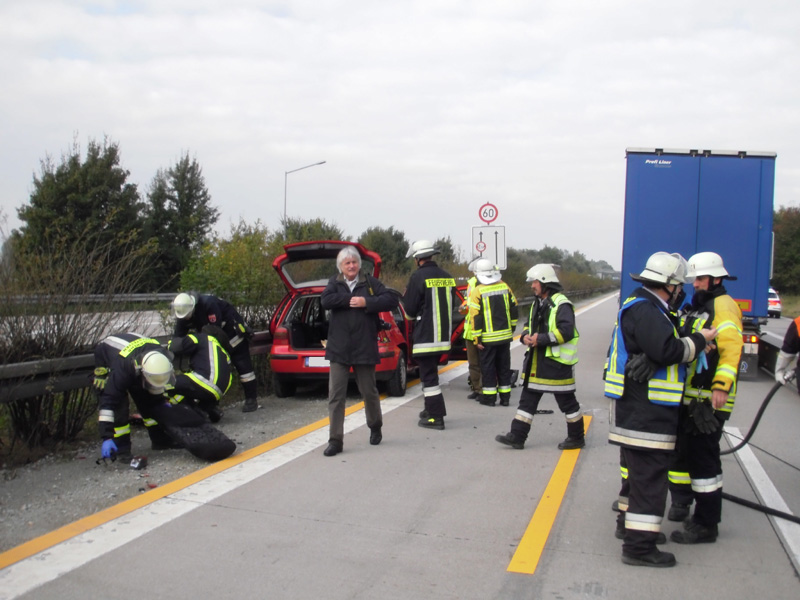 30.08.2013, Alarmierung: 08:56 Uhr Die Feuerwehr Kirchroth wurde zu einem Verkehrsunfall auf die Autobahn zwischen Kirchroth und Wörth alarmiert. Da sich die Einsatzstelle auf der Überholspur befand und nicht klar war, wann die Autobahnmeisterei eintreffen würde, wurde die Feuerwehr Parkstetten mit ihrem VSA nachgefordert. Bei dem Unfall sind zwei Fahrzeuge aufeinander aufgefahren, dabei ausgelaufene Betriebsstoffe wurden von der Feuerwehr gebunden. Die zufällig zum Unfall hinzugekommene Feuerwehr Amstetten aus Österreich errichtete noch vor unserem Eintreffen eine Verkehrsabsicherung. Die Einsatzstelle konnte nach kurzer Zeit an Polizei und Autobahnmeisterei übergeben werden.
