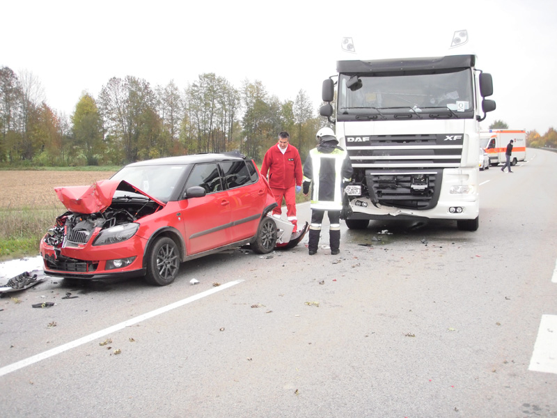 23.10.2013, Alarmierung: 11:40 Uhr Die Feuerwehren Kirchroth und Kößnach wurden zu einem Verkehrsunfall auf die Staatsstraße Richtung Straubing auf Höhe Bachhof alarmiert. Dort mussten mehrere Fahrzeuge aufgrund eines Linienbusses abbremsen, dies übersah ein LKW-Fahrer und fuhr auf die haltenden PKWs auf und schob sie ineinander. Die Feuerwehren sicherten die Unfallstelle ab und reinigten die Fahrbahn.