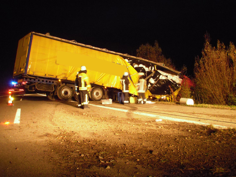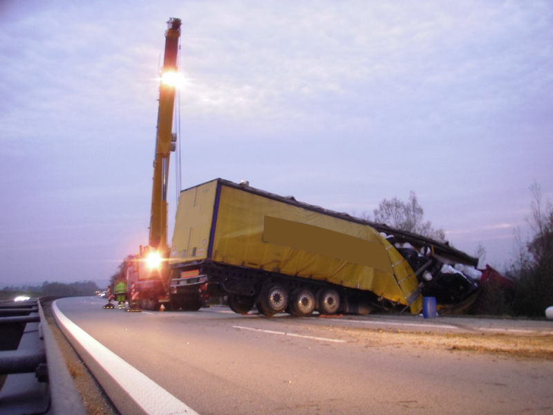 13.11.2013, Alarmierung: 04:38 Uhr Die Feuerwehren Kirchroth und Parkstetten wurden auf die Autobahn zu einem Verkehrsunfall mit einem LKW alarmiert. Der Lastwagenfahrer ist laut Polizei vermutlich aufgrund Übermüdung von der Fahrbahn abgekommen. Sein Fahrzeug blieb mit dem Führerhaus im Graben quer über beide Fahrstreifen stehen. Der Fahrer wurde leicht verletzt ins Klinikum Straubing eingeliefert. Zum Abpumpen von Diesel wurde die Feuerwehr Steinach nachgefordert. Um den LKW bergen zu können, war es notwendig, die auf der Ladefläche befindlichen Matratzen auf ein Ersatzfahrzeug umzuladen, dazu wurde das THW aus Bogen und Straubing angefordert. Aufgabe der Feuerwehren war in erster Linie die Absicherung und Ausleuchtung der Einsatzstelle. Nach Sonnenaufgang konnte der Einsatz für die Feuerwehr beendet werden.