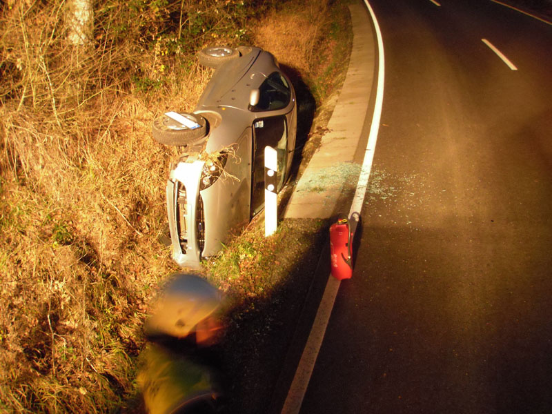 18.11.2013, Alarmierung: 16:45 Uhr Die Feuerwehr Kirchroth wurde zu einem Verkehrsunfall am Kirchrother Keller gerufen. Eine PKW-Fahrerin war auf dem Weg von Saulburg Richtung Kirchroth ins Schleudern geraten und dabei in den Graben gestürzt. Der Verkehr an der Einsatzstelle wurde geregelt sowie der Brandschutz sichergestellt.