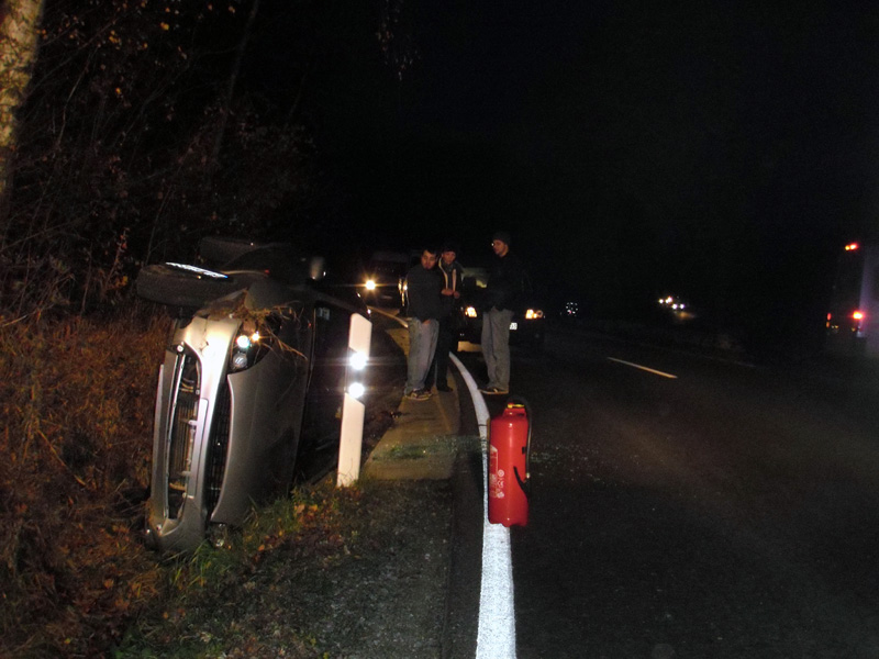 02.11.2013, Alarmierung: 05:25 Uhr Zu einem Verkehrsunfall wurden wir von der ILS Regensburg angefordert. Ein Kleinbus war auf Höhe der Anschlussstelle Wörth Ost auf die Seite gestürzt. Da die genaue Einsatzstelle anfangs nicht bekannt war, wurde die Feuerwehr Wörth alarmiert, als diese die tatsächliche Einsatzörtlichkeit bekannt gab, wurde die FF Kirchroth nachgefordert. Die Wörther Wehr ist kurz vor uns am Unfallort eingetroffen, das Eingreifen der Feuerwehr Kirchroth war nicht mehr notwendig.