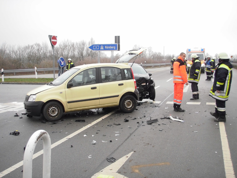 19.12.2013, Alarmierung: 12:26 Uhr Die Einsatzmeldung lautete PKW-Überschlag, was sich jedoch beim Eintreffen an der Einsatzstelle nicht bestätigte. Eine PKW-Fahrerin wollte die A 3 in Richtung Straubing verlassen. Beim Linksabbiegen übersah sie dabei ein vorfahrtberechtigtes Fahrzeug auf der St 2148, es kam zum Zusammenstoß. An der Unfallstelle wurde der Verkehr geregelt, auslaufende Betriebsstoffe gebunden, die Fahrbahn gereinigt sowie die leichtverletzten Personen bis zum Eintreffen des Rettungsdienstes betreut und versorgt.