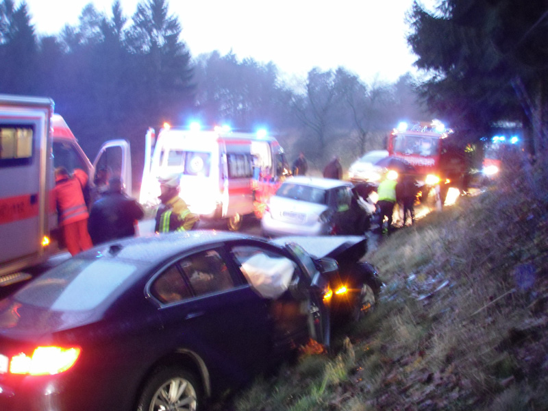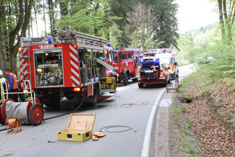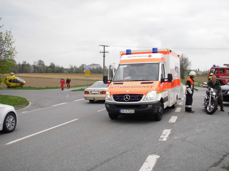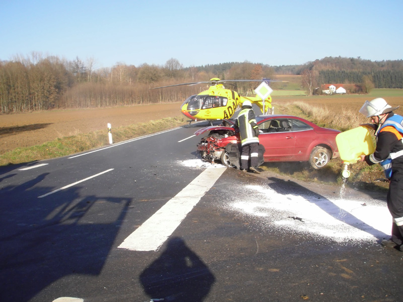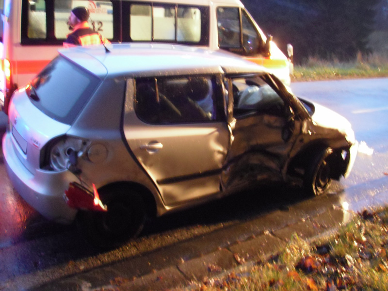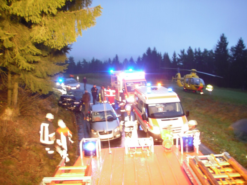 15:46 Uhr Verkehrsunfall, SR 28 zwischen Saulburg und Falkenfels Die Feuerwehren aus Kirchroth, Wiesenfelden und Saulburg wurden zu einem Verkehrsunfall mit eingeklemmter Person auf die SR 28 zwischen Saulburg und Falkenfels alarmiert. Beim Eintreffen stellte sich glücklicherweise heraus, dass niemand eingeklemmt war. Eine PKW-Fahrerin ist laut Polizeibericht auf der nassen Fahrbahn ins Schleudern geraten, ein entgegenkommender BMW konnte nicht mehr ausweichen und fuhr frontal in die Beifahrerseite des anderen Fahrzeugs. Die Verletzten wurden mit einem Rettungswagen bzw. dem Rettungshubschrauber ins Krankenhaus gebracht. Die Feuerwehren errichteten eine Vollsperre für den Streckenabschnitt, stellten den Brandschutz sicher und leuchteten die Einsatzstelle aus.