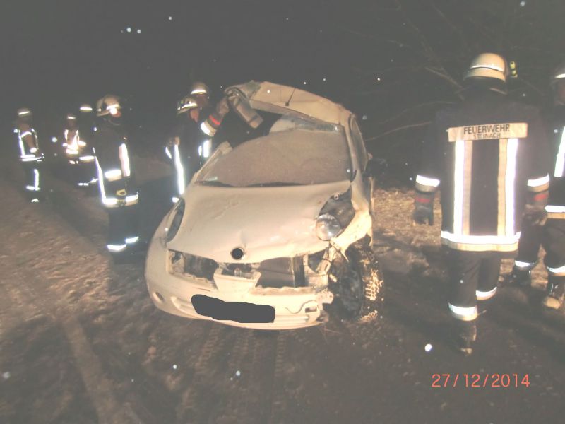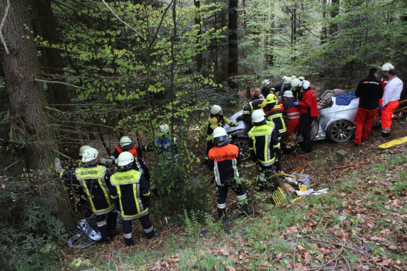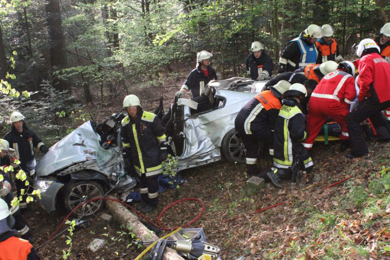17:38 Uhr Verkehrsunfall mit eingeklemmter Person, St 2148 Saulburg - Wiesenfelden Die Feuerwehren aus Kirchroth, Wiesenfelden und Saulburg wurden zu einem Verkehrsunfall mit eingeklemmter Person auf die St 2148 zwischen Saulburg und Wiesenfelden alarmiert. Dort war ein Fahrzeug, das in Richtung Wiesenfelden unterwegs war, vermutlich aus nicht angepasster Geschwindigkeit von der Fahrbahn abgekommen und gegen einen Baum geprallt, bevor es dann an der Böschung zu stehen kam. Der Fahrer wurde im Fußraum massiv eingeklemmt. Er musst von den Feuerwehren Kirchroth und Wiesenfelden mit schwerem Rettungsgerät, unter anderem mit Spreizer, Schneidgerät und unserem Seilzug, befreit werden, bevor er mit einem Rettungswagen ins Klinikum nach Straubing transportiert werden konnte. Für den Zeitraum der Personenbefreiung musste die Straße vollständig für den Verkehr gesperrt werden.