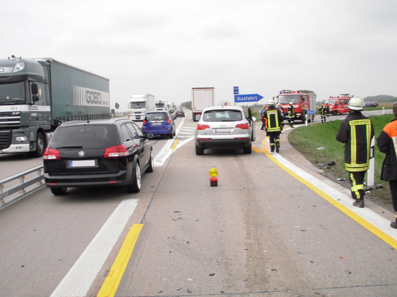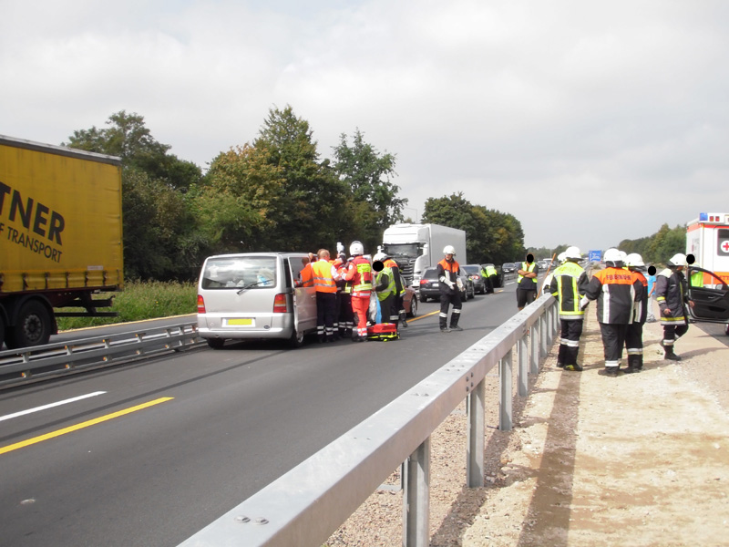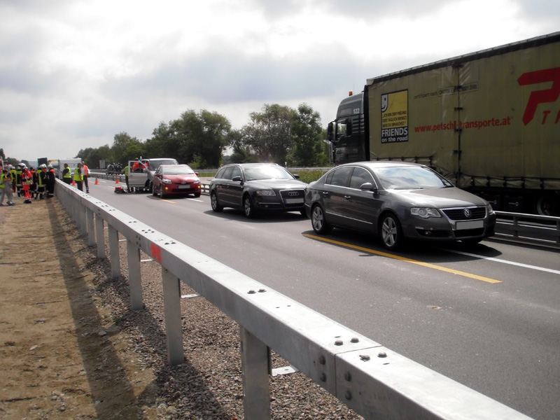 10:44 Uhr Auffahrunfall, BAB 3 Kirchroth - Wörth Die Feuerwehren aus Kirchroth und Parkstetten wurden in den Baustellenbereich der A3 zwischen Kirchroth und Wörth alarmiert. Dort war es zu einem Auffahrunfall gekommen, bei dem insgesamt sechs Personen leicht verletzt und zur ambulanten Behandlung in ein Krankenhaus gebracht wurden. Aufgabe der Feuerwehr war das Reinigen der Fahrbahn. Die Anfahrt musste über die Baustelle erfolgen, da anders kein Durchkommen gewesen wäre. Der VSA er FF Parkstetten brauchte nicht mehr auf die Autobahn auffahren, weil der Stau schon bis zur AS Kirchroth reichte.