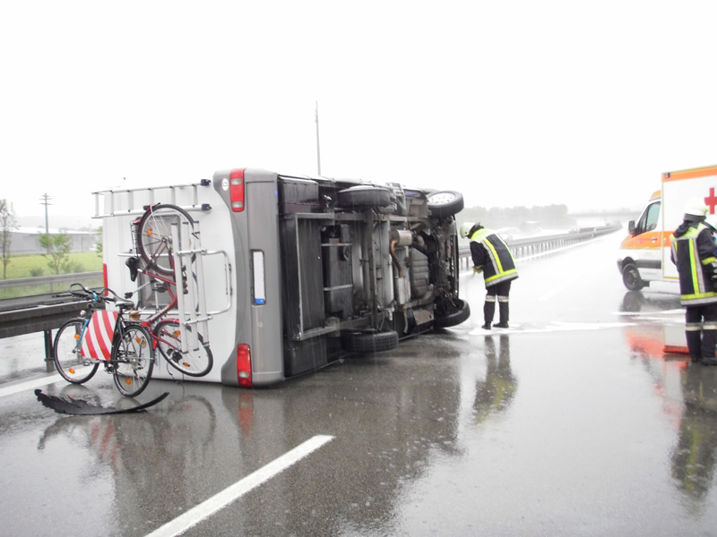 10:22 Uhr Verkehrsunfall, Wohnmobil umgekippt, BAB 3 Kirchroth - Steinach Die Feuerwehren aus Kirchroth und Parkstetten wurden zu einem Verkehrsunfall auf die Autobahn alarmiert. Dort war ein Wohnmobil, vermutlich durch einen geplatzten Reifen, umgestürzt und auf der Überholspur liegen geblieben. Verletzt wurde dabei glücklicherweise niemand. Die Feuerwehren sicherten die Unfallstelle ab und banden die auslaufenden Betriebsstoffe.