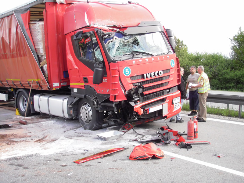08:22 Uhr LKW gegen Brücke, BAB 3 Kirchroth - Wörth Die Feuerwehren aus Kirchroth, Parkstetten und Straubing wurden zu einem Verkehrsunfall mit einem LKW mit vermutlich eingeklemmter Person auf die Autobahn zwischen Kirchroth und Wörth gerufen. Dort war ein Lastwagen aus ungeklärter Ursache kurz nach der Anschlussstelle von der Fahrbahn abgekommen und im Anschluss gegen die Brückenböschung gefahren. Der Fahrer konnte sich glücklicherweise noch selbst aus dem völlig zerstörten Führerhaus befreien, er wurde mittelschwer verletzt ins Klinikum Straubing gebracht. Die Feuerwehren stellten den Brandschutz sicher und sicherten die Unfallstelle ab. Die Einsatzstelle konnte bald an Polizei und Autobahnmeisterei übergeben werden. Im weiteren Verlauf wurde noch das THW zur Bergung hinzugezogen.