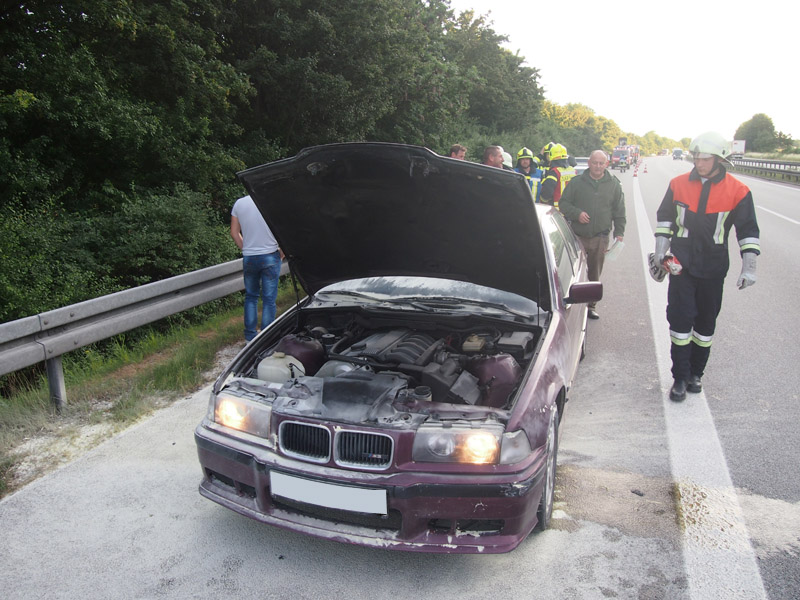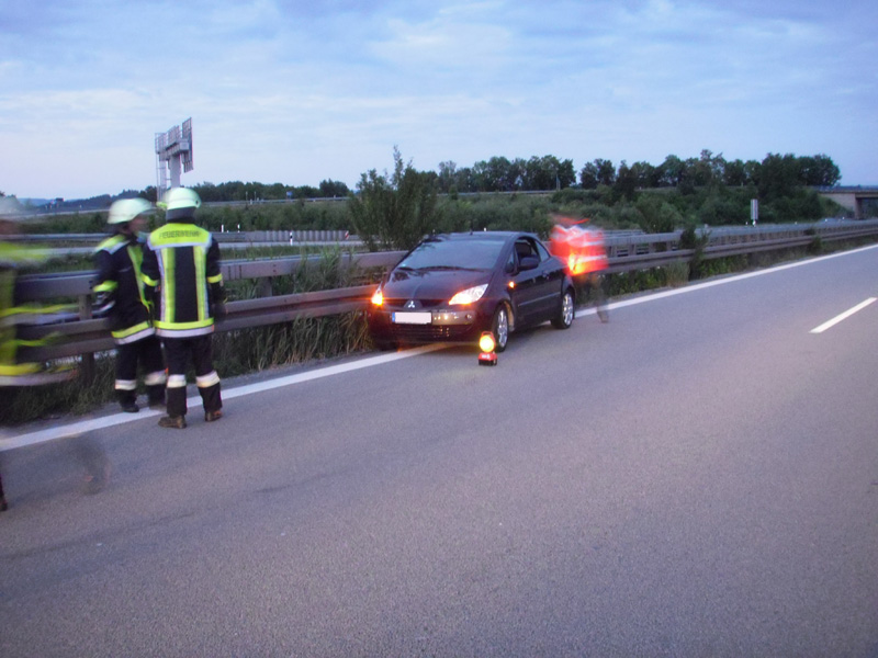 Alarmierung: 19:55 Uhr PKW Brand, BAB 3 Kirchroth - Steinach Die Feuerwehren aus Kirchroth und Parkstetten wurden zu einem PKW Brand auf die Autobahn zwischen Kirchroth und Steinach alarmiert. Dort hatte ein PKW aus unbekannter Ursache im Motorraum Feuer gefangen. Bis zum Eintreffen der Feuerwehren konnte der Fahrzeuglenker den Brand jedoch mit einem Feuerlöscher ablöschen. Der Einsatz konnte rasch abgeschlossen werden.