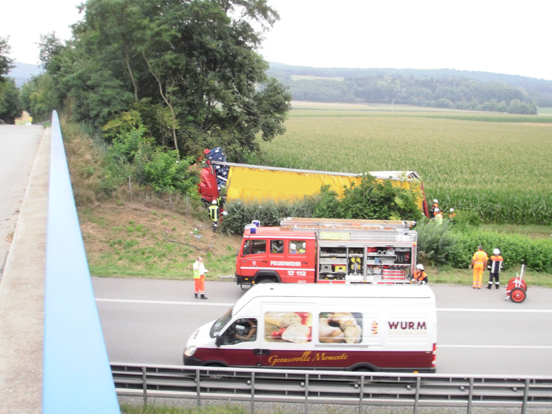 05:12 Uhr Verkehrsunfall mit LKW, BAB 3 Wörth - Kirchroth Die Feuerwehren aus Kirchroth und Wörth wurden zu einem Verkehrsunfall mit einem LKW alarmiert. Zwischen den Anschlussstellen Wörth und Kirchroth war ein LKW von der Fahrbahn abgekommen. Dieser blieb direkt unter einer Brücke stehen. Da der Fahrer nicht, wie zuerst vermutet, in seinem Führerhaus eingeklemmt war, konnten wir den Einsatz noch während der Anfahrt abbrechen.