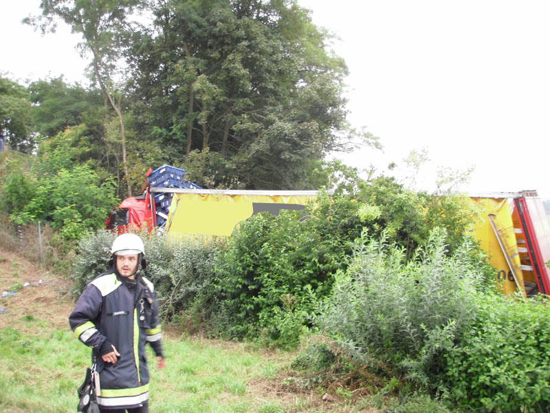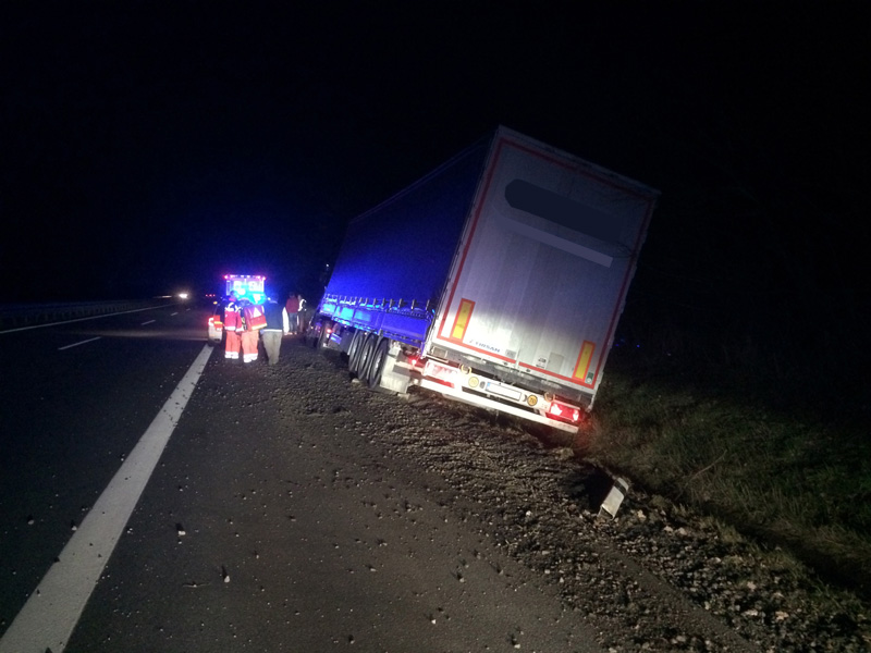 21:32 Uhr LKW von Fahrbahn, BAB 3, Kirchroth - Wörth Die Feuerwehren aus Kirchroth, Parkstetten und Straubing wurden zu einem Verkehrsunfall auf die BAB 3 zwischen Kirchroth und Wörth alarmiert. Dort war ein LKW aus bisher ungeklärter Ursache von der Fahrbahn ab- und im Seitenstreifen zum Stehen gekommen. Der Fahrer konnte sich selbst aus dem Lastwagen befreien. Die Feuerwehren konnten bald wieder abrücken.