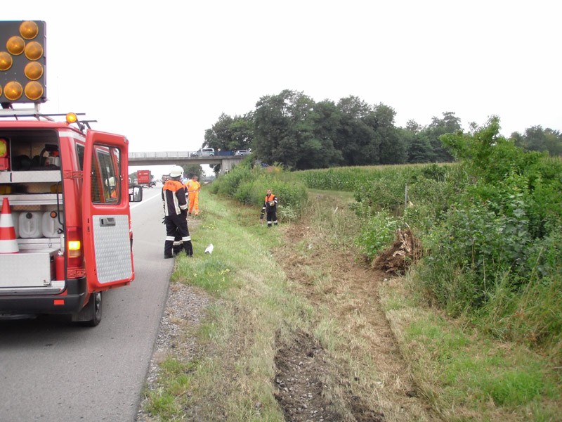 20:21 Uhr tödlicher Verkehrsunfall, BAB 3 Kirchroth - Straubing Die Feuerwehren aus Kirchroth, Parkstetten und Bogen wurden zu einem Verkehrsunfall mit eingeklemmter Person auf die Autobahn alarmiert. Ein PKW war alleinbeteiligt aus unbekannter Ursache von der Fahrbahn abgekommen und in der Böschung seitlich gegen einen Baum geprallt. Die Fahrerin sowie der Beifahrer wurden dabei schwer verletzt, ein auf der Rückbank sitzender Mitfahrer wurde so schwer verletzt, dass er noch an der Unfallstelle verstarb. Er wurde durch die Feuerwehr ohne schweres Rettungsgerät aus dem Fahrzeug befreit. Die Feuerwehren leisteten Erste Hilfe, kümmerten sich um die Verkehrsabsicherung und um die Ausleuchtung der Einsatzstelle bis der Unfallgutachter mit der Spurenaufnahme fertig war. Ein im Fahrzeug befindlicher Hund wurde zwischenzeitlich auch durch die Feuerwehr betreut.