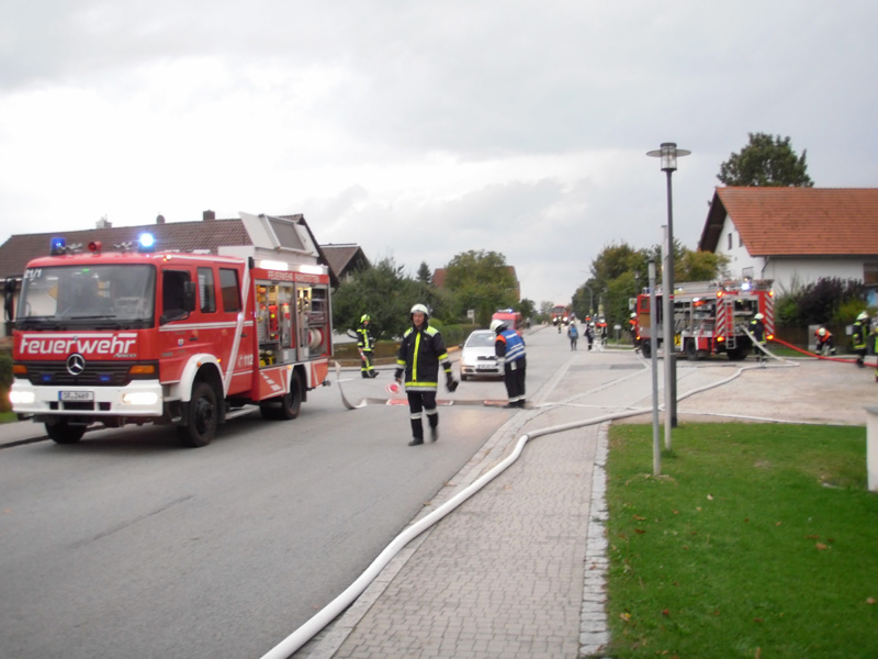 18:31 Uhr EINSATZÜBUNG: Brand Schreinerei, Kirchroth Die unten genannten Feuerwehren wurden zu einer Einsatzübung zur Schreinerei Scherer nach Kirchroth alarmiert. Es wurde ein Brand bzw. eine Verpuffung im Heizungskeller angenommen. Eine Person war als vermisst gemeldet, eine weitere ist in der Panik noch in das verrauchte Gebäude gelaufen. Beide Personen wurden von der Feuerwehr unter schwerem Atemschutz aus dem Haus gerettet. Im Anschluss wurde der Brand bekämpft. Auch von außen wurden mehrere Strahlrohre vorgenommen, unter anderem auch durch die Drehleiter der Feuerwehr Straubing. Eine weitere Herausforderung war die Löschwasserversorgung aus einem etwas weiter entfernten Bach, die durch mehrere Feuerwehren aufgebaut wurde.