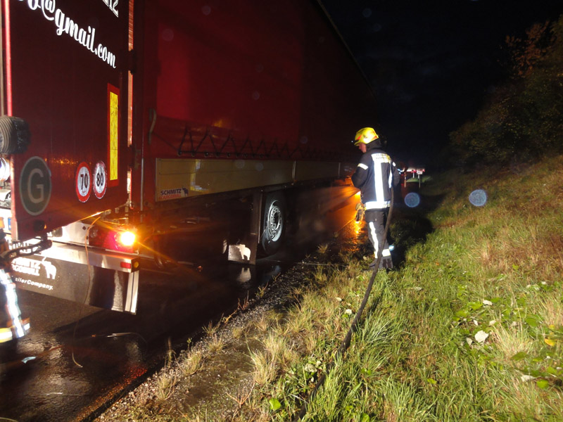 18:47 Uhr Brand LKW Reifen, BAB 3 Kirchroth - Wörth Die Feuerwehren aus Kirchroth und Parkstetten wurden zu einem Brand auf die Autobahn A3 zwischen Kirchroth und Wörth gerufen. Dort war die Achse eines Sattelaufliegers heiß gelaufen. In dessen Folge geriet ein Reifen in Brand und löste sich von der Achse. Die Feuerwehr Kirchroth löschte den brennenden Reifen auf der Überholspur, die FF Parkstetten kühle unterdessen die Achse des LKWs, um eine mögliche Brandgefahr auszuschließen.