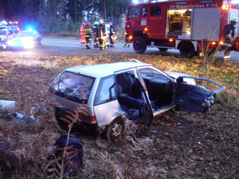 06:57 Uhr Verkehrsunfall, ST2148, Saulburg - Wiesenfelden Die Feuerwehren aus Kirchroth und Wiesenfelden wurde zu einem Verkehrsunfall mit eingeklemmter Person auf die St 2148 zwischen Saulburg und Frath gerufen. Dort war ein PKW von der Fahrbahn abgekommen und im weiteren Verlauf gegen einen Baum geprallt. Zur schonenden Rettung wurde durch die Feuerwehr Wiesenfelden eine Tür mit dem Rettungsspreizer geöffnet. Die Straße wurde während der Rettungsarbeiten für den Verkehr komplett gesperrt.