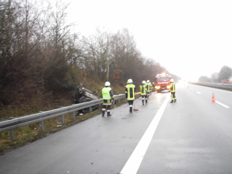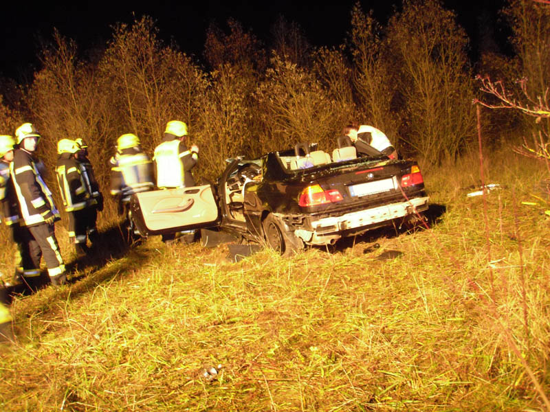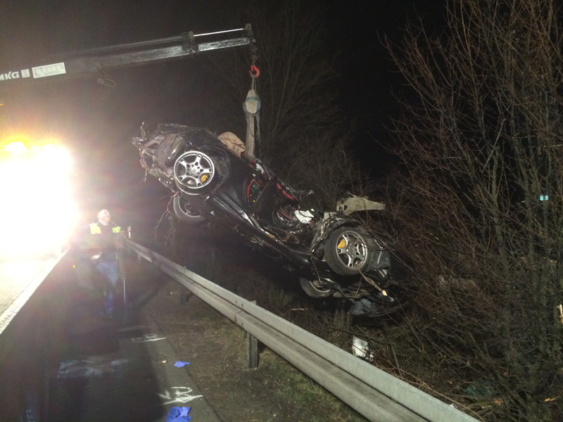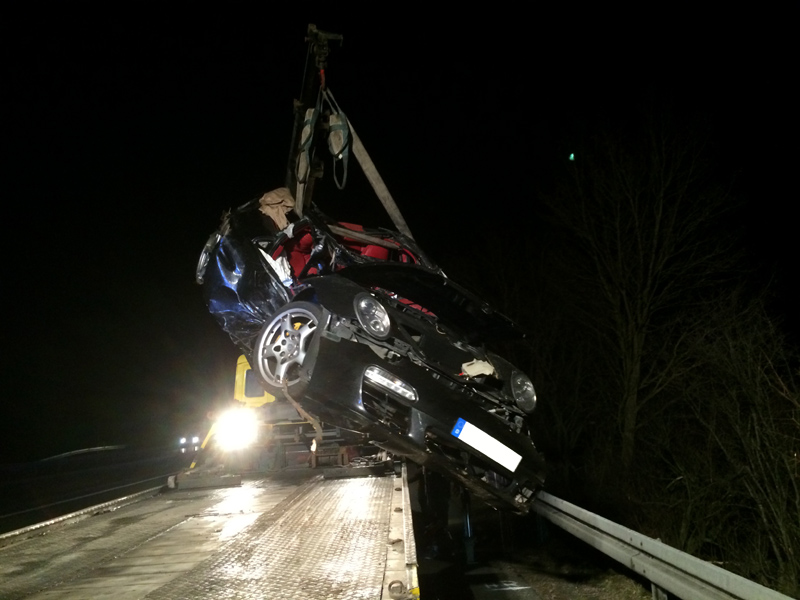 16:32 Uhr tödlicher Verkehrsunfall, BAB 3, Kirchroth - Steinach Die Feuerwehren aus Kirchroth, Parkstetten und Bogen wurde zu einem Verkehrsunfall mit zwei eingeklemmten Personen auf die A3 zwischen Kirchroth und Steinach alarmiert. Dort war bei einem Porsche, der mit hoher Geschwindigkeit unterwegs war, vermutlich ein Reifen geplatzt. In der Folge verlor der Fahrer die Kontrolle über sein Fahrzeug und schleuderte über die Fahrbahn. Eine beginnende Leitplanke wirkte dann wie eine Sprungschanze und ließ den Porsche abheben. Nach etwa 70 Metern Flugstrecke kam er am Boden. Er durchschlug mehrere Sträucher und Bäume, wodurch das Fahrzeug völlig demoliert wurde. Beide Insassen wurden nicht im Fahrzeug eingeklemmt. Der 27 jährige Fahrer wurde mit mittelschweren Verletzungen in ein Regensburger Krankenhaus gebracht, die 29 jähre Beifahrerin verstarb jedoch nach erfolglosen Wiederbelebungsversuchen noch an der Unfallstelle. Zur Betreuung der Einsatzkräfte wurde auch ein Notfallseelsorger an die Einsatzstelle gerufen. Durch herumfliegende Teile wurden noch weitere Fahrzeuge beschädigt. Der Rüstwagen der FF Bogen brauchte die Einsatzstelle nicht mehr anfahren, jedoch wurde im weiteren Verlauf der Lichtmast der Bogener Wehr angefordert, um dem hinzu gerufenen Unfallgutachter die Arbeit zu ermöglichen. Aus diesem Grund errichtete die Autobahnmeisterei auch eine Vollsperrung der Autobahn mit Ausleitung an der AS Kirchroth. Der Einsatz dauerte bis in die Nachtstunden hinein.