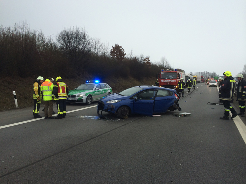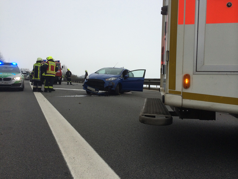 15:46 Uhr Verkehrsunfall, BAB 3, Kirchroth - Wörth Die Feuerwehren aus Kirchroth und Parkstetten wurde zu einem Verkehrsunfall auf die A3 zwischen Kirchroth und Wörth gerufen. Dort war es aus ungeklärter Ursache zu einem Auffahrunfall gekommen, in dessen Folge ein Fahrzeug gegen den Lärmschutzwall und dann wieder zurück auf die Fahrbahn geschleudert wurde. Der Fahrer wurde verletzt und nach der Erstversorgung durch die Feuerwehr in ein Krankenhaus eingeliefert. Der zweite Fahrer blieb unverletzt. Die Feuerwehren errichteten eine Vollsperrung der Autobahn, stellten den Brandschutz sicher und reinigten die Fahrbahn.