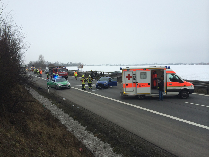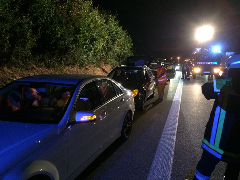Alarmierung: 23:36 Uhr VU, A3, Kirchroth - Straubing Die Feuerwehren aus Kirchroth und Parkstetten wurden zu einem Auffahrunfall auf die Autobahn alarmiert. Dort waren mehrere Fahrzeuge miteinander kollidiert. Mehrere Patienten wurden vom Rettungsdienst in Krankenhäuser gebracht. Die Feuerwehr sicherte die Einsatzstelle.