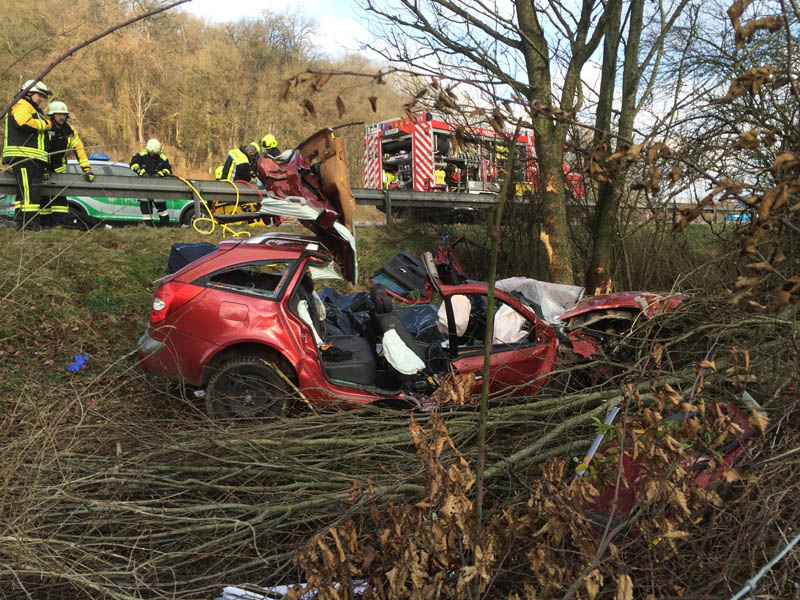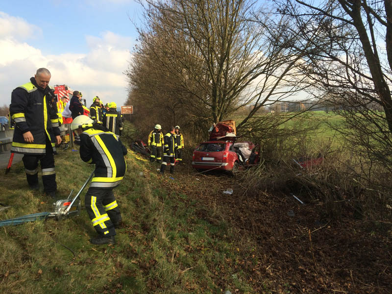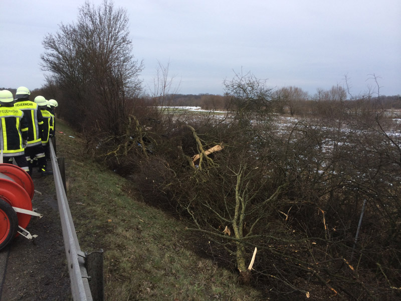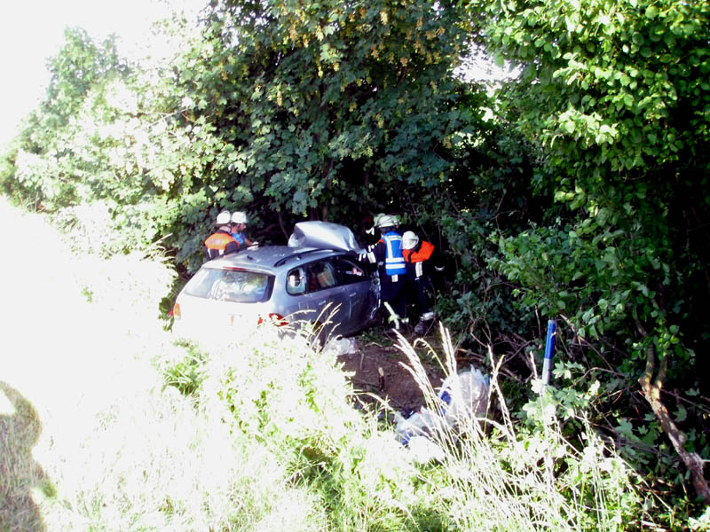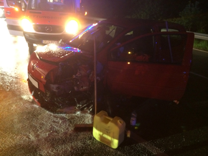 18:55 Uhr VU mit eingeklemmter Person, BAB 3, Wörth - Kirchroth Zu einem Verkehrsunfall mit eingeklemmter Person wurden wir gemeinsam mit der Feuerwehr Wörth auf die Autobahn zwischen Wörth und Kirchroth gerufen. Ein mit zwei Personen besetzter PKW war von der Fahrbahn abgekommen, eine Böschung hinunter gestürzt und dort gegen einen Baum gefahren. Bis zu unserem Eintreffen hat die FF Wörth die eingeklemmte Person bereits befreit. Beide Personen wurden vom Rettungsdienst in ein Krankenhaus gefahren.