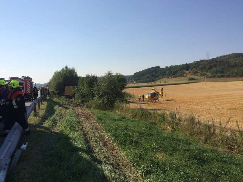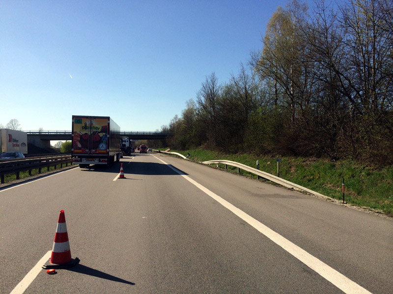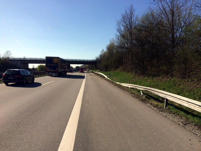 16:15 Uhr Verkehrsunfall, BAB 3, Kirchroth - Wörth Zu einem Verkehrsunfall mit eingeklemmter Person auf der A3 zwischen Kirchroth und Wörth wurden die Feuerwehren aus Kirchroth, Parkstetten und Straubing alarmiert. Dort war ein BMW mit etwa 230 km/h in die Leitplanke geschleudert. Das Fahrzeug kam etwa 300 Meter weiter am dem Standstreifen zum stehen. Der Notruf wurde durch das Fahrzeug selbst, genauer gesagt über das E-Call-System, abgesetzt. Der Fahrer kam mit schweren Verletzungen in ein Krankenhaus. Die Feuerwehren sicherten Einsatzstelle ab und reinigten die Fahrbahn. Da niemand eingeklemmt war, konnte der Rüstwagen aus Straubing die Einsatzfahrt abbrechen.