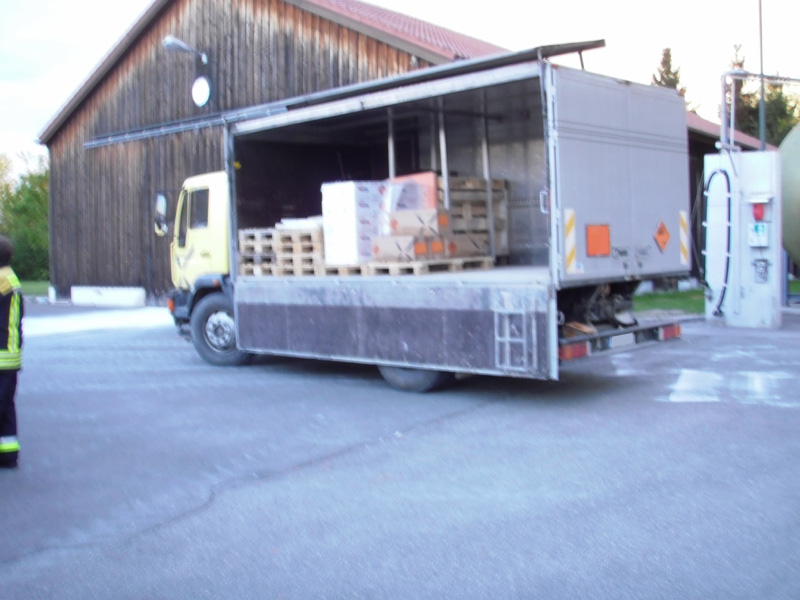 19:30 Uhr Brandabsicherung, Umladen von Gefahrgut, Autobahnmeisterei Kirchroth Auf der Autobahn wurde von der Polizei ein LKW kontrolliert, dessen Ladung aus Sprengstoff bestand. Da ein Teil der Verpackung beschädigt war, wurde die Weiterfahrt untersagt, die Ware müsse umgeladen werden. Die FFW Kirchroth wurde zur Brandabsicherung während der Umladearbeiten hinzugezogen. Da jedoch die extra angelieferte, neue Verpackung ebenfalls nicht geeignet war, wurde der Einsatz für heute abgebrochen.