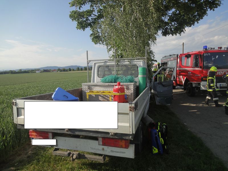 17:35 Uhr Verkehrsunfall, Bielhof - Unterzeitldorn Gemeinsam mit der FF Parkstetten wurden wir zu einem Verkehrsunfall mit eingeklemmter Person gerufen. Ein Kleintransporter musste zwei Mofafahrern ausweichen und ist dadurch von der Fahrbahn abgekommen und gegen einen Baum gefahren. Die Insassen des Kleintransporters wurden verletzt, jedoch nicht in ihrem Fahrzeug eingeklemmt. Nach kurzer Zeit auf Bereitschaft konnte die FF Kirchroth die Einsatzstelle wieder verlassen.
