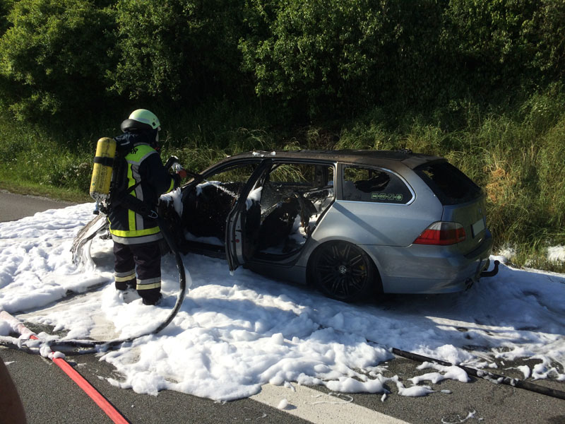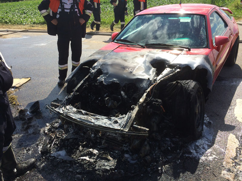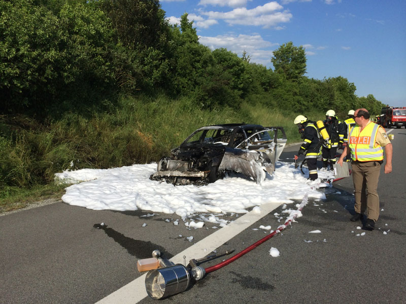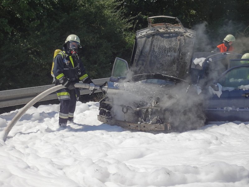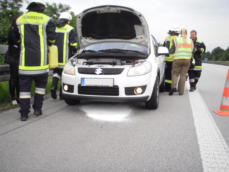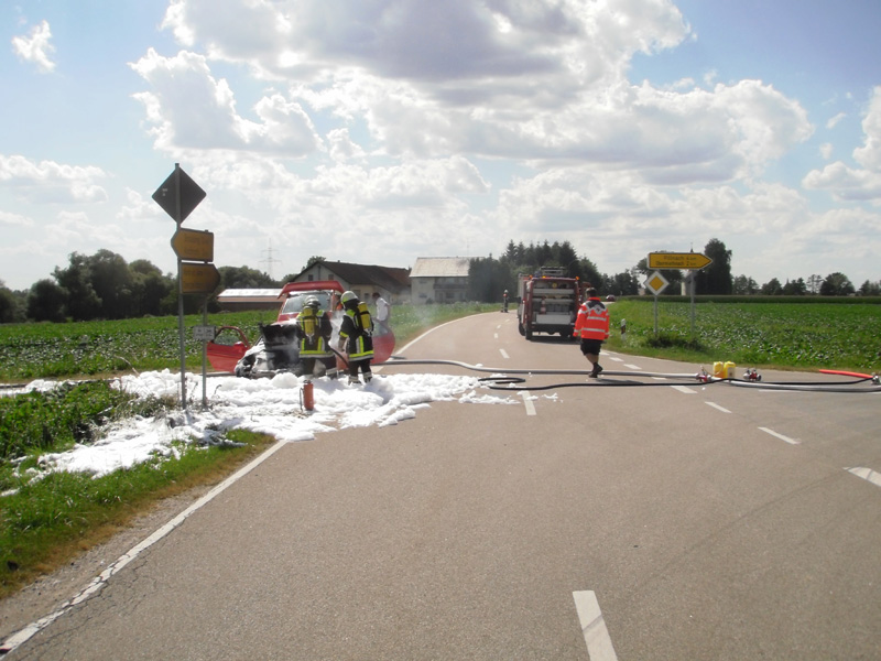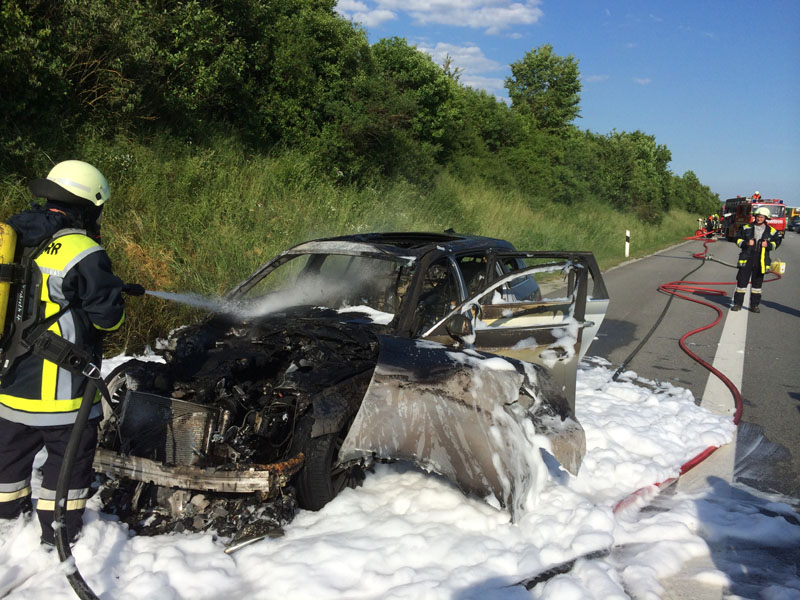 Alarmierung: 11:27 Uhr Brand PKW, A3, Kirchroth - Straubing Die Feuerwehren aus Kirchroth und Parkstetten wurden zu einem PKW-Brand auf die A3 zwischen Kirchroth und Straubing gerufen. Beim Eintreffen an der Einsatzstelle stand der vordere Teil des Fahrzeugs in Vollbrand. Unter schwerem Atemschutze wurde der PKW mit Mittelschaum abgelöscht. Für die Dauer der Löscharbeiten wurde Autobahn vollständig gesperrt. Verletzt wurde niemand.