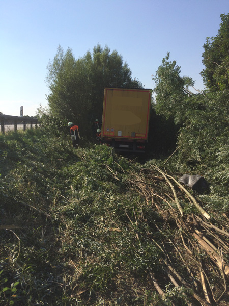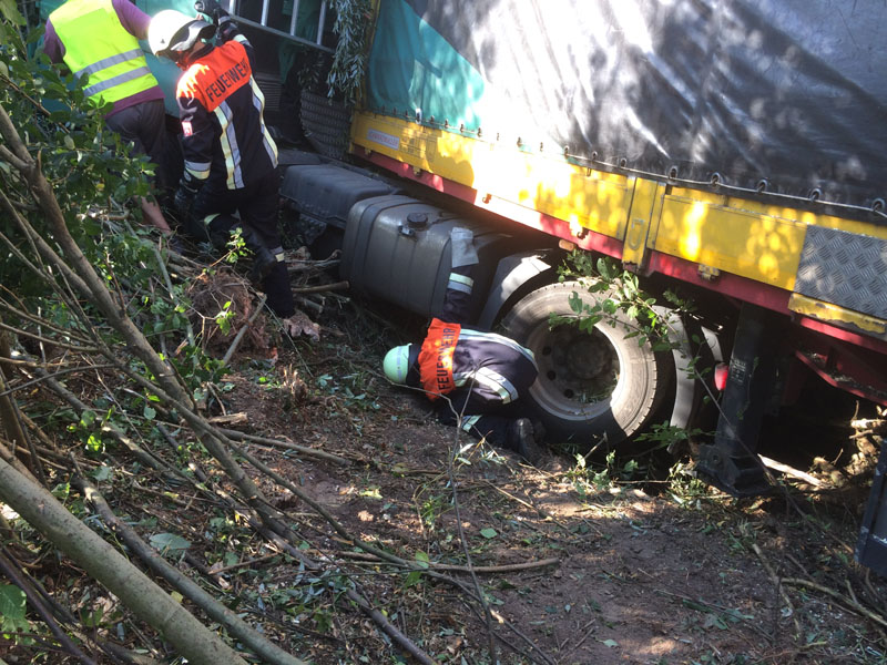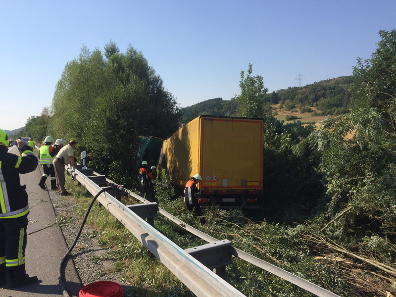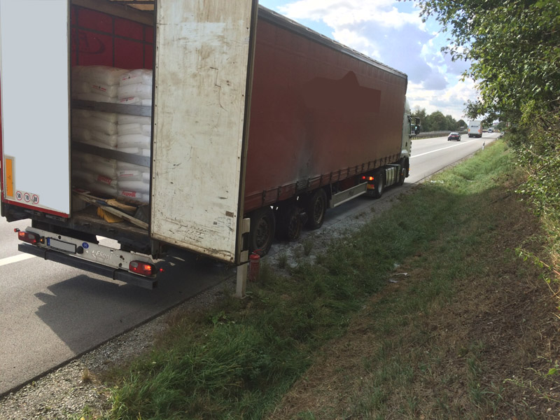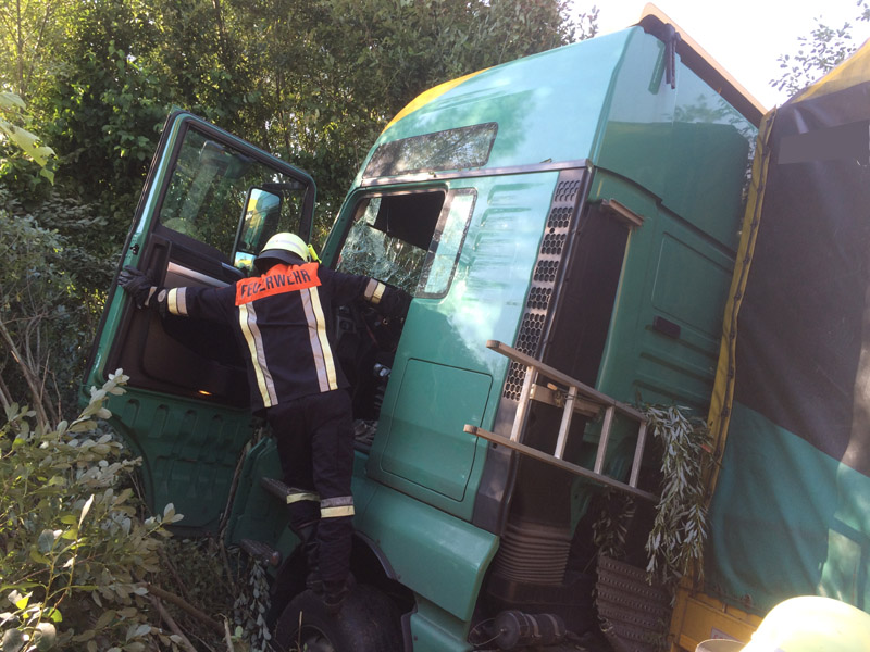 Alarmierung: 16:40 Uhr VU LKW, A3, Kirchroth - Wörth Zu einem Verkehrsunfall mit LKW mit eingeklemmter Person wurden die Wehren aus Kirchroth, Parkstetten und Straubing mit dem Rüstwagen auf die Autobahn alarmiert. Ein LKW Fahrer ist aus unbekannter Ursache nach rechts von der Fahrbahn abgekommen, eine Böschung hinunter gefahren und im Gebüsch stecken geblieben. Der LKW Fahrer konnte sich unverletzt aus dem Fahrzeug befreien. Der LKW hat sich bei dem Unfall den Dieseltank aufgerissen und eine größere Menge Diesel verloren.