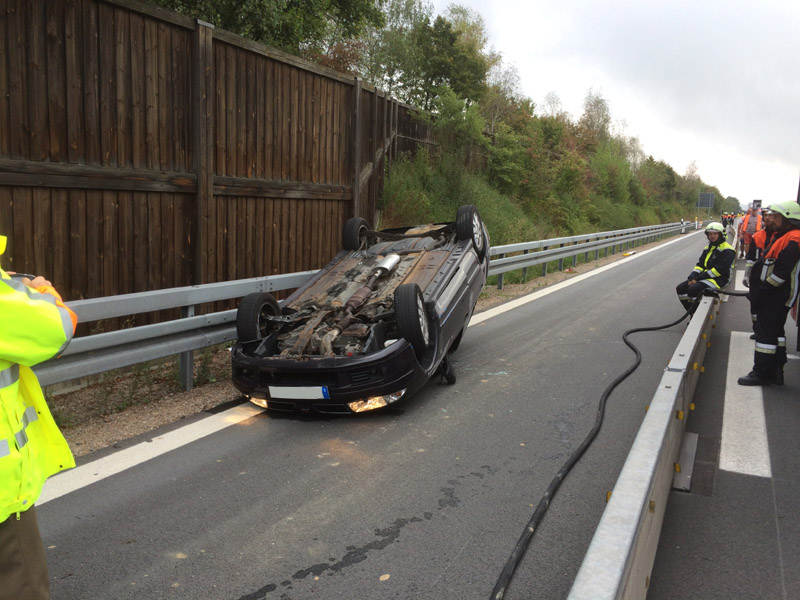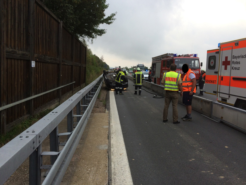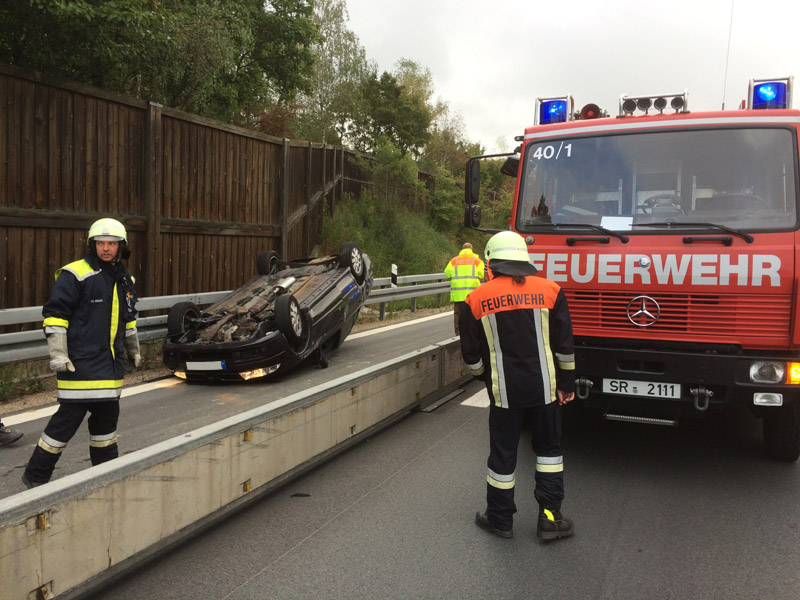 Alarmierung: 08:05 Uhr VU PKW-Überschlag, A3, Kirchroth - Wörth Zu einem PKW-Überschlag ist es auf der A3 zwischen Kirchroth und Wörth gekommen. Das Fahrzeug ist genau auf einen Fahrbahnteiler am Beginn der dortigen Baustelle gestoßen, der wie eine Sprungschanze wirkte. Der PKW ist am Dach liegend hinter der Behelfsleitplanke gelandet, alle Insassen haben das Fahrzeug eigenständig verlassen. Da weder Betriebsstoffe ausliefen, noch ein Verkehrshindernis bestand, konnten die Feuerwehren zügig wieder abrücken