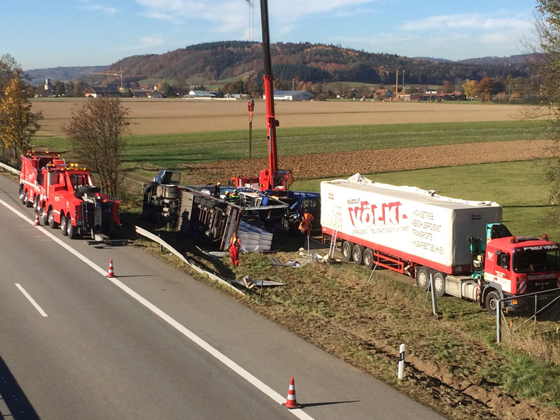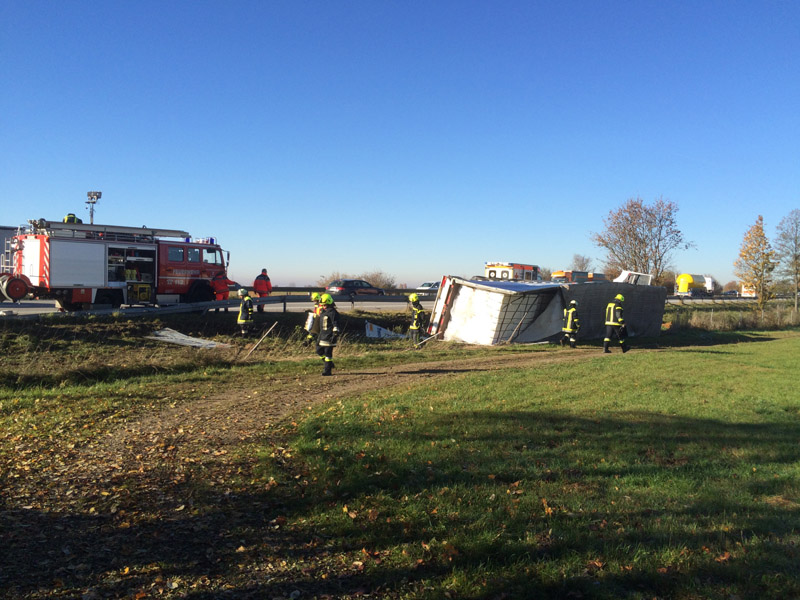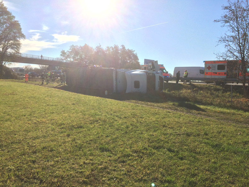 Alarmierung: 10:13 Uhr VU LKW von Fahrbahn, A3 Kirchroth - Wörth Gemeinsam mit der FF Parkstetten wurden wir zu einem umgestürzten LKW auf die A3 zwischen Kirchroth und Wörth alarmiert. Der Lastwagen ist aus ungeklärter Ursache von der Fahrbahn abgekommen und im angrenzenden Grünstreifen dann auf die Seite gekippt. Der Fahrer blieb dabei unverletzt. Da aus dem Dieseltank mehrere hundert Liter Kraftstoff ausgetreten waren, wurde das Wasserwirtschaftsamt hinzugezogen. Zum Bergen des Fahrzeugs war neben einem Abschleppunternehmen auch das THW vor Ort.