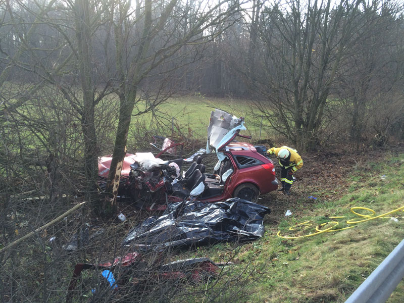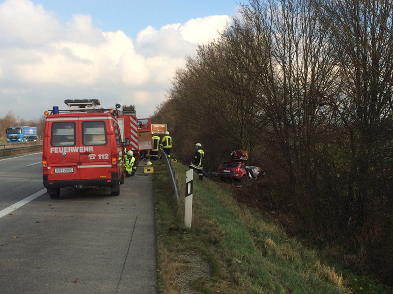 Alarmierung: 12:18 Uhr tödlicher VU mit eingeklemmter Person, A3 Kirchroth - Steinach Zu einem schweren Verkehrsunfall wurden wir gemeinsam mit den Wehren aus Parkstetten und Bogen auf die A3 zwischen Kirchroth und Steinach alarmiert. Dort war ein PKW ohne Fremdeinwirkung nach rechts von der Fahrbahn abgekommen und dort ins Gehölz geprallt. Beide Fahrzeuginsassen wurden im Fahrzeug eingeklemmt, die Beifahrerin konnte mit schweren Verletzungen aus dem PKW befreit werden und wurde mit einem Rettungshubschrauber in ein Regensburger Krankenhaus gebracht, der Fahrer konnte leider nur noch tot aus dem Fahrzeug geborgen werden.
