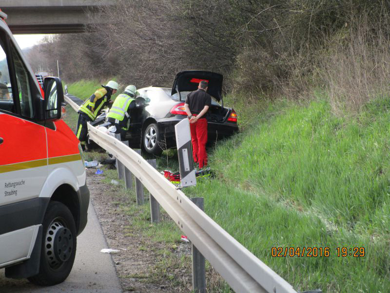 06:58 Uhr Verkehrsunfall, A3 Kirchroth - Steinach Zu einem Verkehrsunfall sind wir heute auf die A3 Richtung Steinach gerufen worden. Ein PKW ist aus unbekannter Ursache nach rechts von der Fahrbahn abgekommen und im Gebüsch zum stehen gekommen. Der Fahrer wurde dabei leicht verletzt und wurde vom Rettungsdienst versorgt.