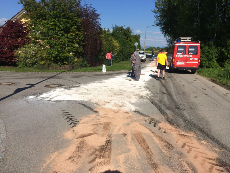 15:29 Uhr Auslaufender Kraftstoff, A3, Kirchroth - Steinach Zu einem Verkehrsunfall mit LKW wurden wir auf die A3 zwischen Kirchroth und Steinach alarmiert. Vermutlich durch einen Reifenplatzer ist der LKW nach rechts von der Fahrspur abgekommen und hat sich an der Leitplanke den Tank aufgerissen. Eine größere Menge Diesel lief aus und verteilte sich über alle Fahrspuren, wo er durch den fließenden Verkehr auch noch großflächig verteilt wurde. Das Leck am Tank wurde verschlossen sowie der Diesel gebunden, wozu auch eine kurzzeitige Vollsperrung der A3 nötig war. Später wurden wir noch einmal von der Autobahnmeisterei telefonisch angefordert, um eine Ölsperre einzurichten, da eine unbekannte Menge Diesel über das Kanalsystem in einen angrenzenden Graben gelangt ist.