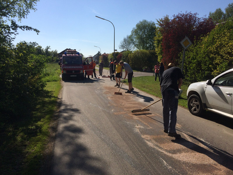 16:30 Uhr Ölspur, Pittrich Zu einer Ölspur in Pittrich wurden wir telefonisch von einem Anwohner gerufen. Wir haben uns mit dem MZF zur Einsatzstelle begeben. Aufgrund der Größe der Ölspur wurde noch die örtlich zuständige Feuerwehr Pittrich hinzugezogen. Die Ölspur wurde gemeinsam gebunden, durch den Bauhof Kirchroth wurden noch Ölwarnschilder aufgestellt.