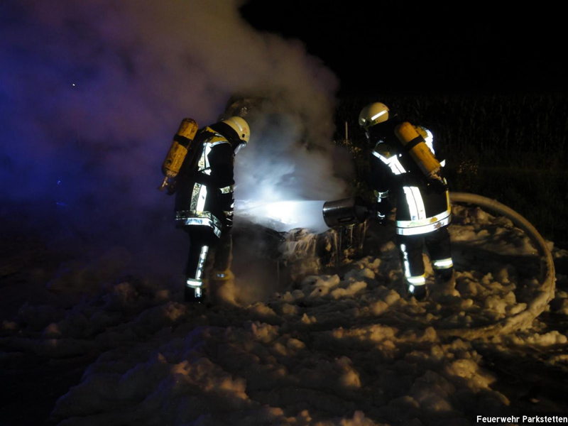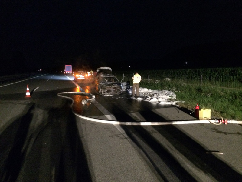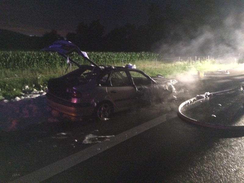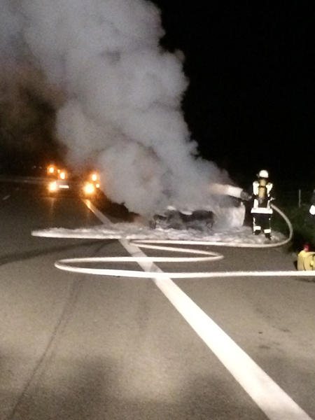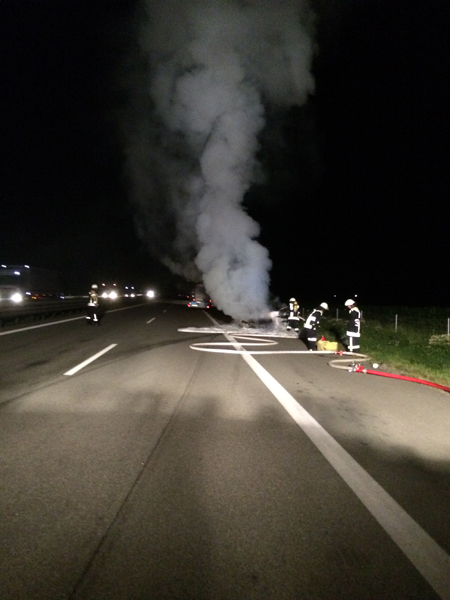 03:29 Uhr PKW Brand, A3 Zu einem PKW-Brand wurden wir heute Nacht auf die A3 zwischen Kirchroth und Wörth alarmiert. Beim Eintreffen stand das Fahrzeug bereits im Vollbrand. Dieser wurde durch die Feuerwehr Kirchroth mit Schaum unter schwerem Atemschutz abgelöscht. Die Autobahn musste während der Löscharbeiten vollständig gesperrt werden. Anschließend wurde die Fahrbahn gereinigt und der Verkehr am Einsatzort vorbei geleitet.